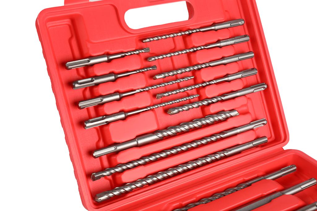 ⚙️ Zawartość: wiertła do betonu, dłuto szpiczaste, dłuta płaskie