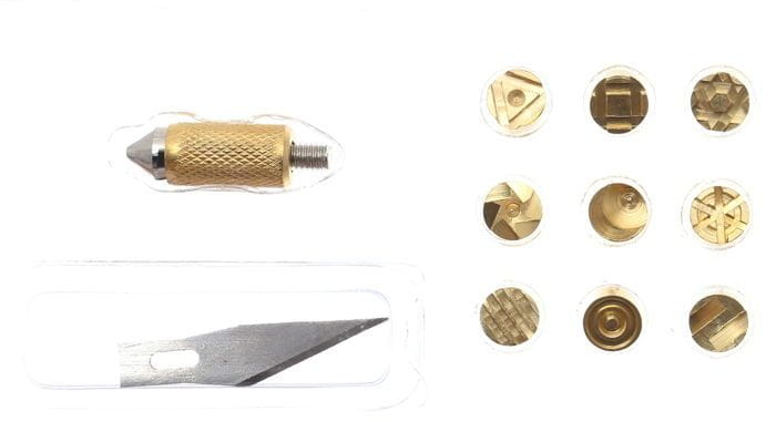 | Cechy: • Typ urządzenia: wypalarka do drewna, skór • Zasilanie: 230V/50Hz • Moc: 30W • Temperatura: 275°C • Ilość grotów w zestawie: 22 elementy • Waga zestawu: 0,8 kg | Skład zestawu • Wypalarka KD10112 • 22 różne groty (końcówki) • Instrukcja obsługi w j. polskim • Deklaracja zgodności • Gwarancja 12 miesięcy • Oryginalne opakowanie • Paragon lub FV. |