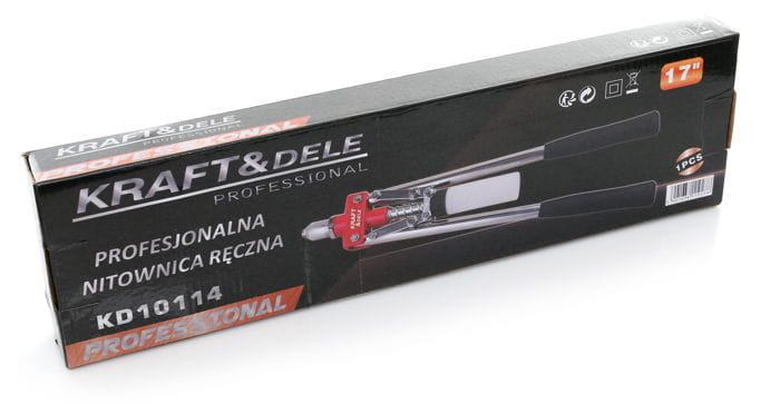 Profesjonalna nitownica ręczna model KD10114 polskiej marki KRAFT&DELE. Wykonana z najwyższej jakości materiałów, w tym stali oraz aluminium.
