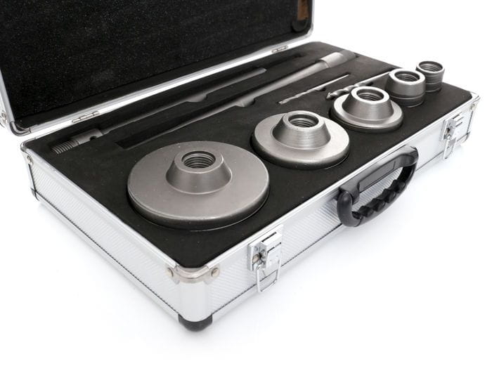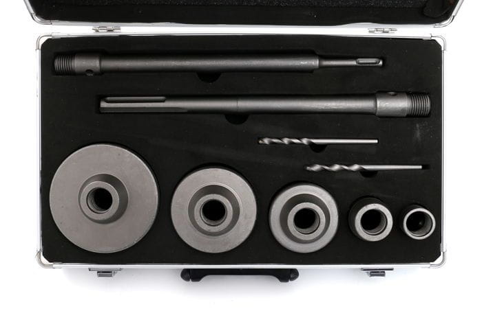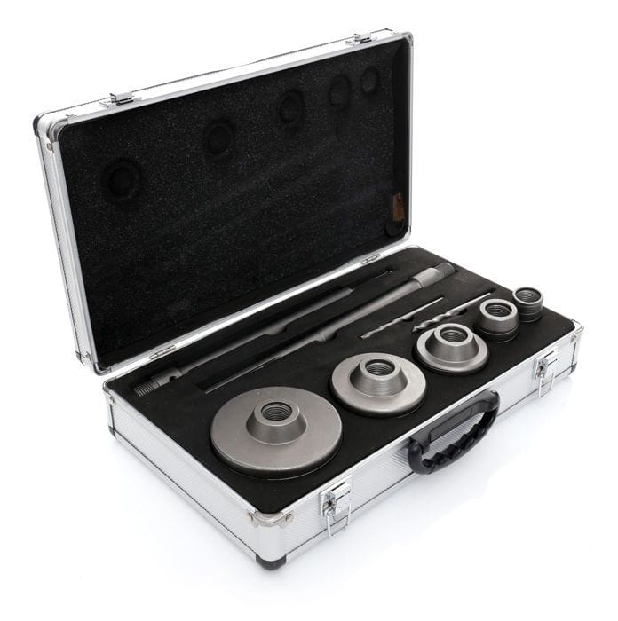Zestaw KD10277 zawiera 5 otwornic do muru w rozmiarach: 30, 40, 65, 80, 100 mm. Mocowanie na system SDS+ 10x300 oraz 18x300 mm. Dwa wiertło prowadzące 110mm.