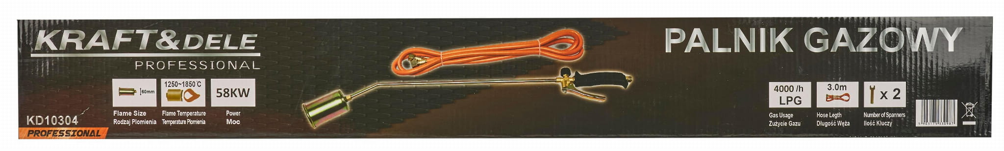 KD10304 to profesjonalny palnik gazowy dekarski marki KRAFT&DELE, przeznaczony do prac takich jak zgrzewanie papy, opalanie i gięcie materiałów na gorąco. Urządzenie zapewnia precyzyjną kontrolę płomienia dzięki rękojeści z regulacją przepływu gazu, umożliwiając bezpieczne i efektywne wykonywanie prac dekarskich oraz przemysłowych.