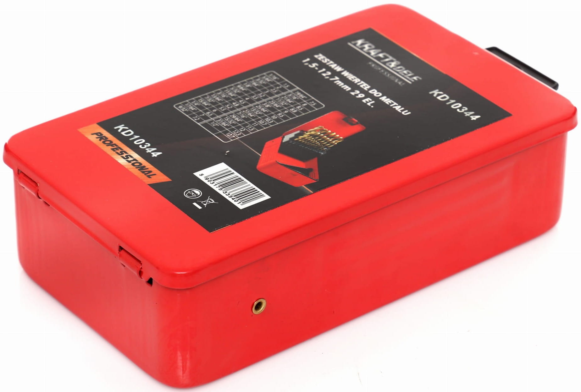 KD10344 to kompletny zestaw 29 wierteł tytanowych marki KRAFT&DELE, przeznaczony do precyzyjnego wiercenia w stali, żeliwie, metalach kolorowych oraz tworzywach sztucznych. Zastosowana powłoka tytanowa zwiększa trwałość i ogranicza ścieralność, dzięki czemu wiertła dłużej zachowują ostrość i pracują pewniej nawet podczas intensywniejszych prac warsztatowych.