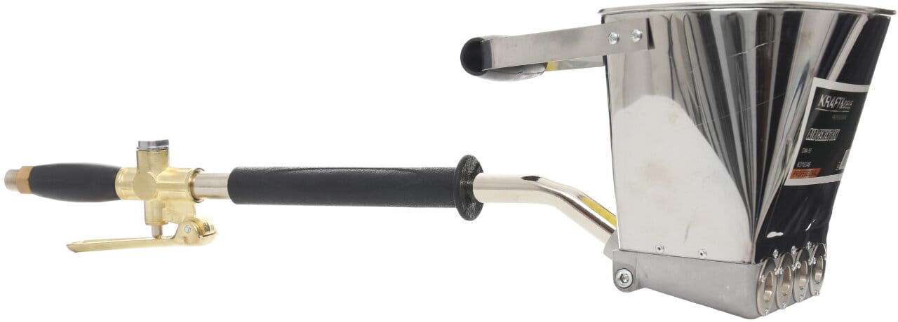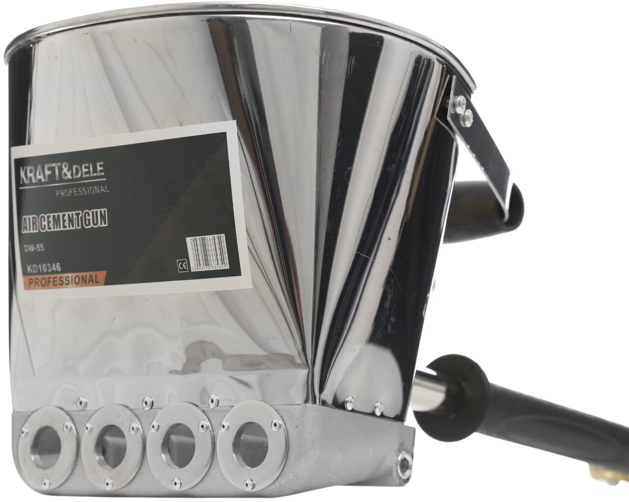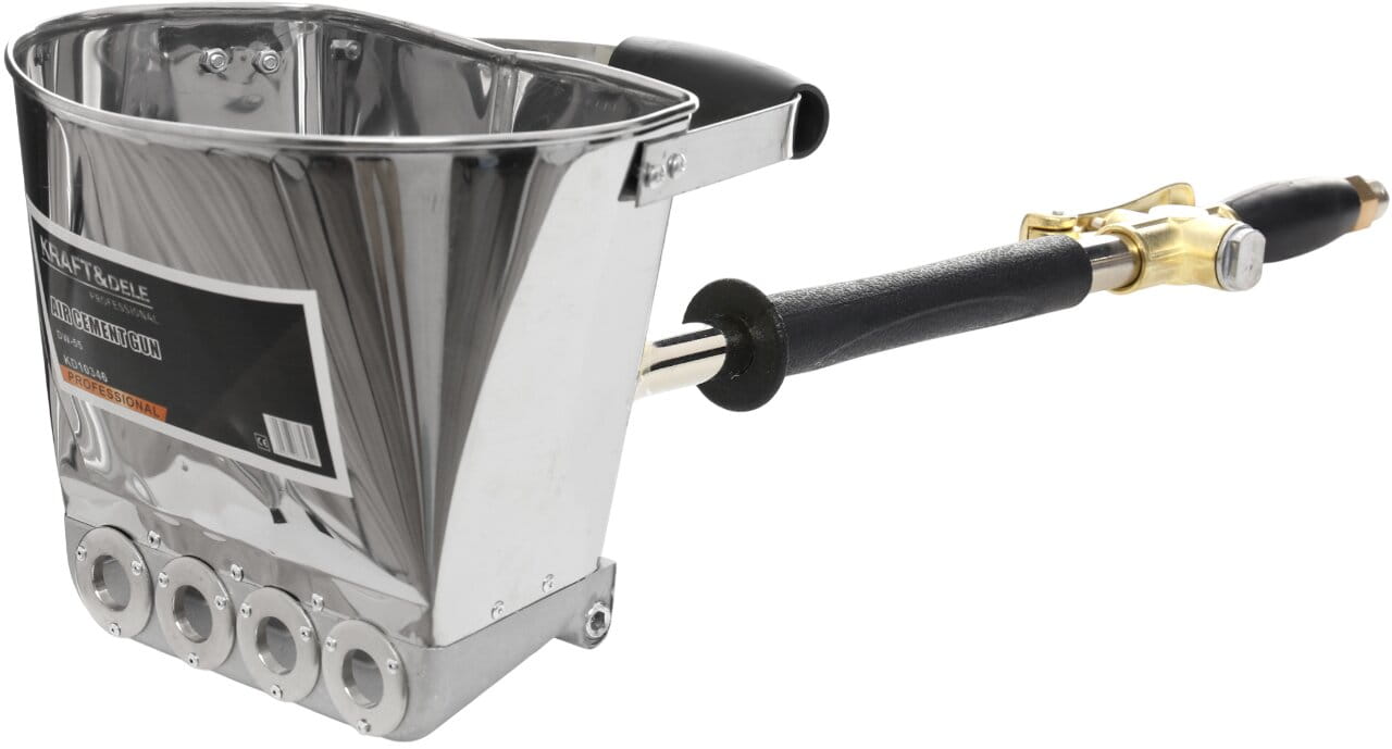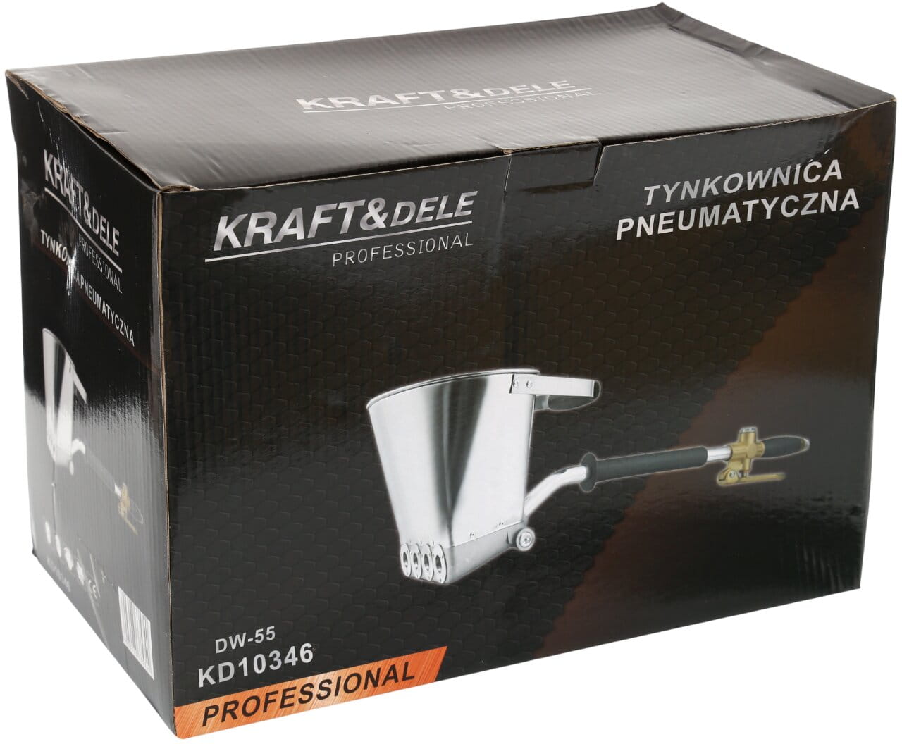 Model KD10346 sprawdzi się zarówno w użytku domowym, jak i profesjonalnym. Solidna konstrukcja oraz precyzyjna dysza zapewniają równomierne rozprowadzanie materiału i estetyczny efekt końcowy. Pojemny zbiornik o pojemności 3,5 litra pozwala na dłuższą pracę bez częstego uzupełniania, a zasilanie pneumatyczne gwarantuje stabilne i powtarzalne rezultaty. Tynkownica doskonale współpracuje z kompresorem, co czyni ją praktycznym narzędziem do różnorodnych zastosowań budowlanych.
