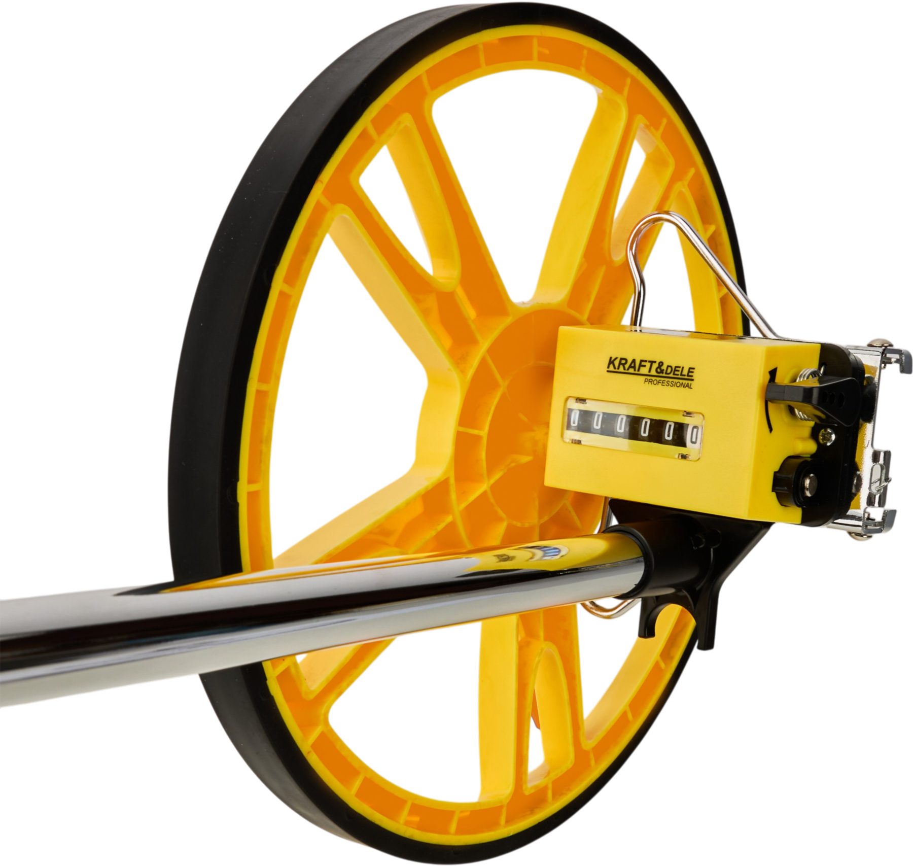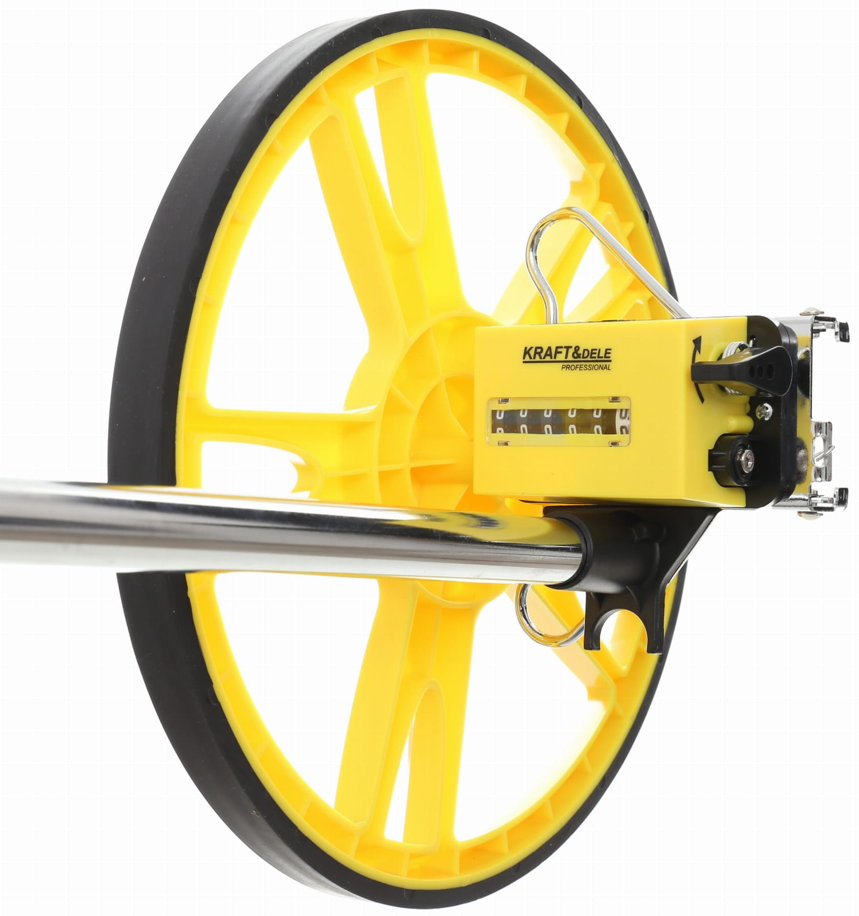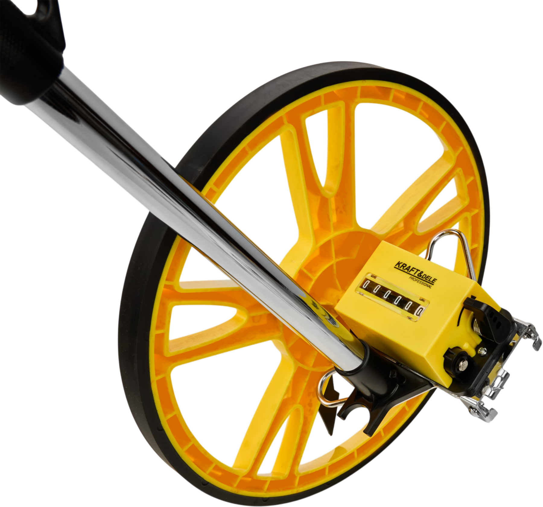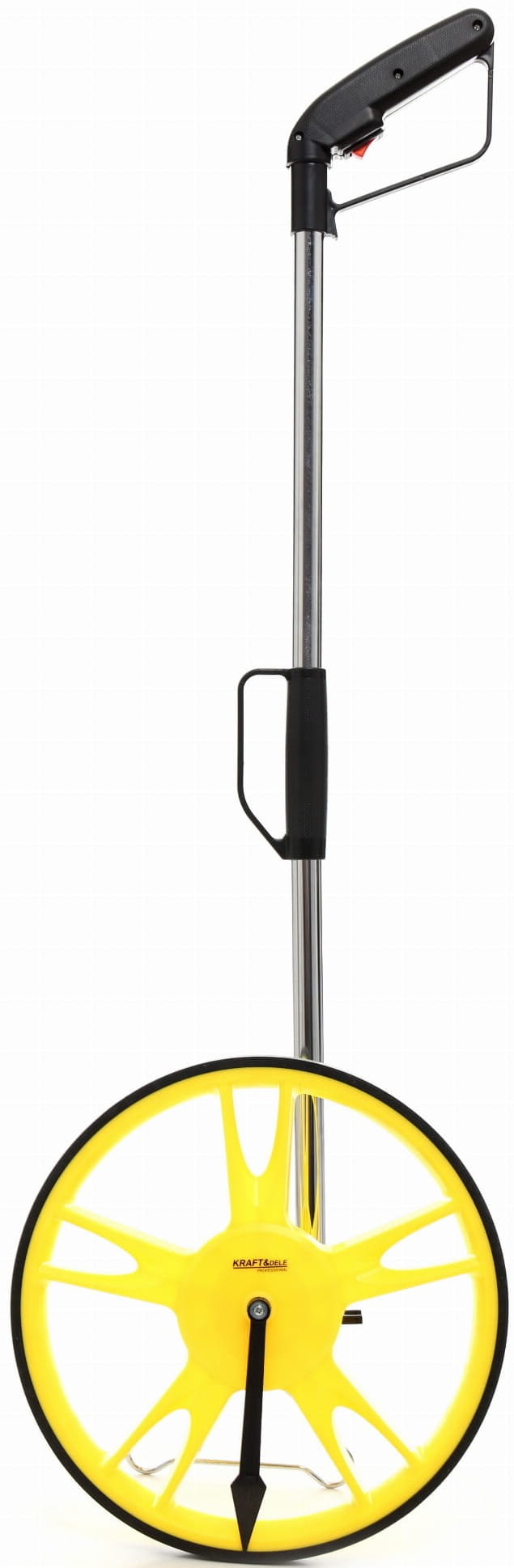 KD10421 to praktyczne koło miernicze marki KRAFT&DELE, stworzone do szybkiego i czytelnego odmierzania dystansu w terenie oraz na utwardzonych nawierzchniach. Pomiar wykonywany jest intuicyjnie – poprzez toczenie koła po powierzchni, a wynik pojawia się od razu na liczniku w formie wyraźnych cyfr, co ułatwia pracę zarówno w terenie, jak i w warunkach domowych.