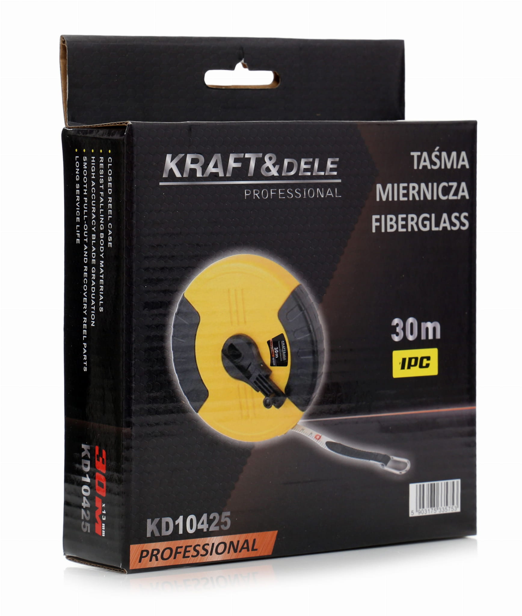Profesjonalna taśma miernicza polskiej marki Kraft&Dele. Dostępna w wariantach różniących się długością miary.