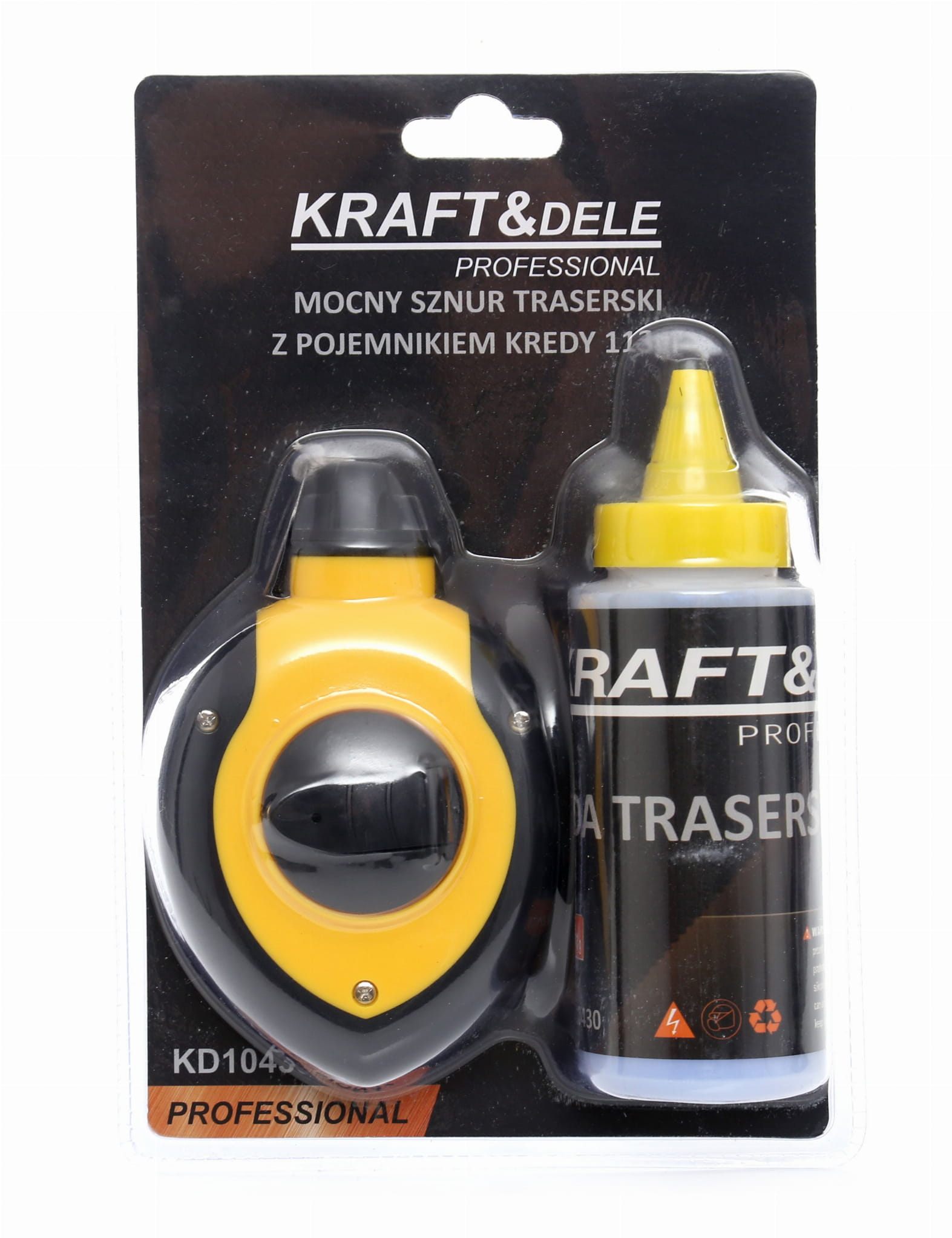 Profesjonalny sznur traserski z pojemnikiem kredy polskiej marki Kraft&Dele. Sznurek traserski znajduje bardzo duże zastosowanie w budownictwie, pracach murarskich, malarskich czy glazurniczych. Służy do wyznaczania linii prostych. Pozwala na równe układanie cegieł, pustaków oraz płytek. W zestawie znajduje się dodatkowo niebieski talk. Produkt przeznaczony dla każdego, kto zajmuje się budownictwem. Ergonomię pracy gwarantują wygodny uchwyt oraz płynnie rozwijająca się szpula.