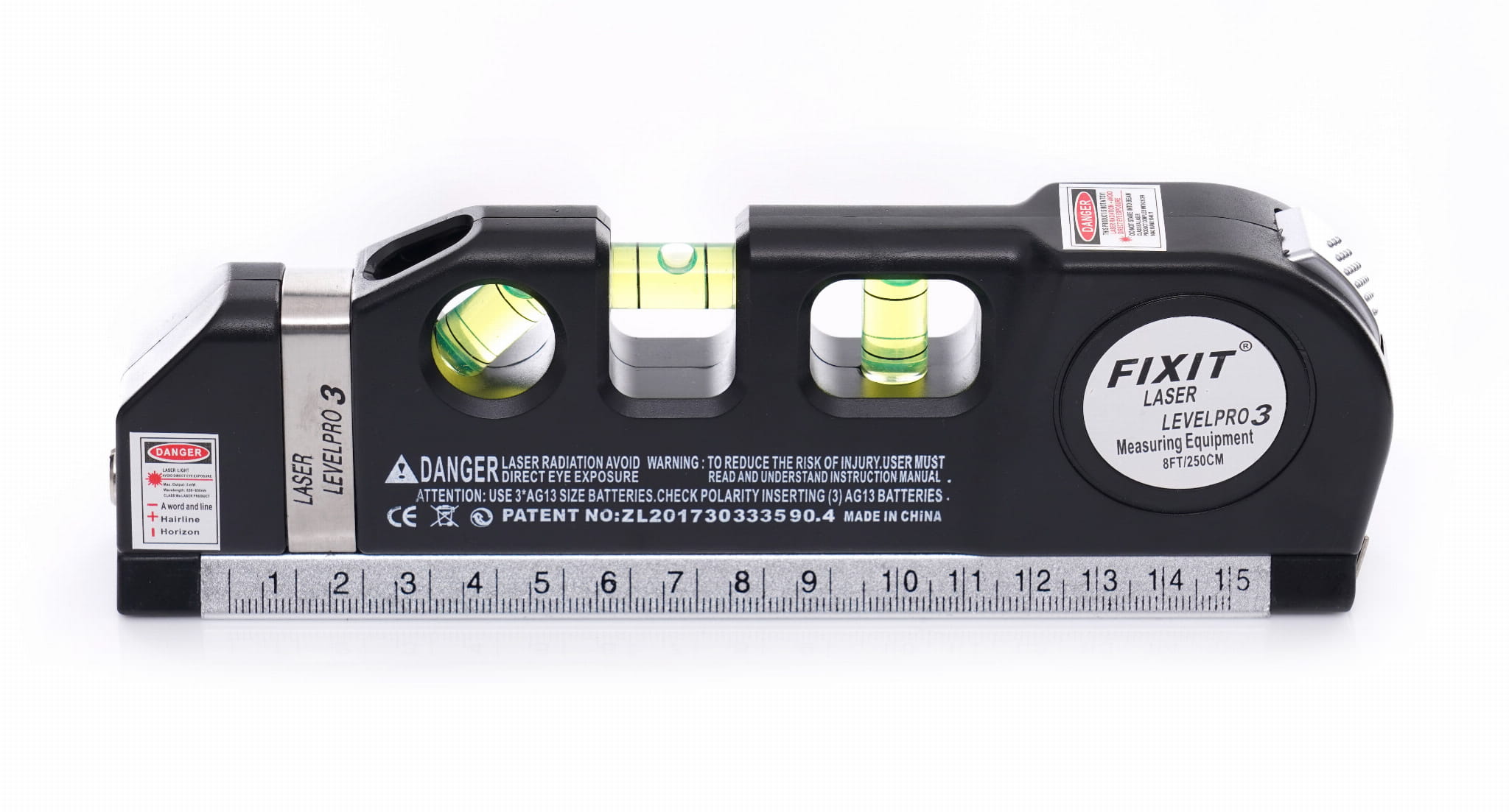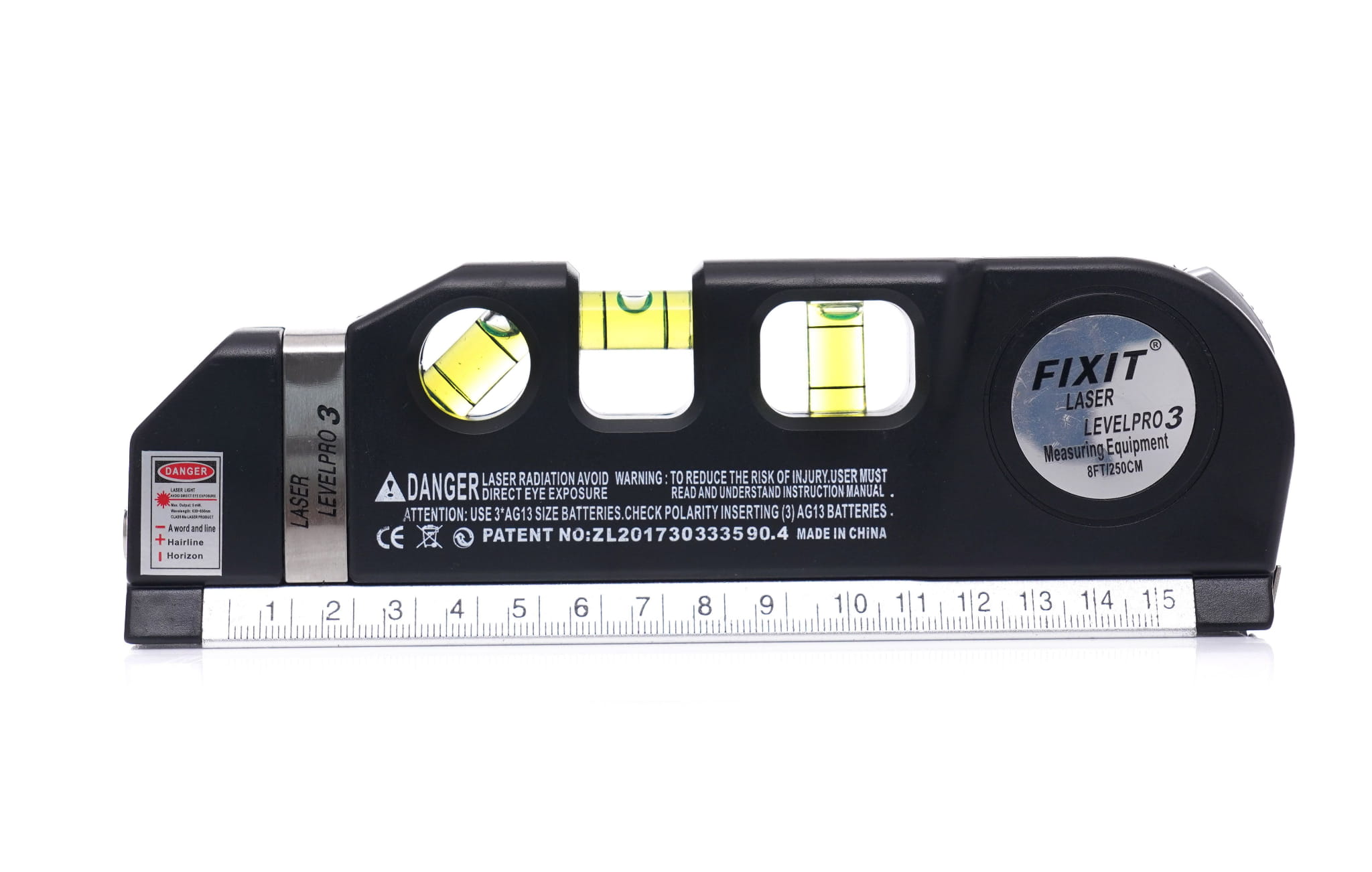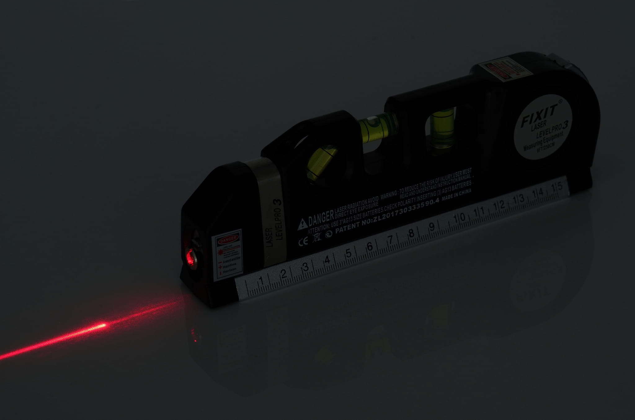Wyjątkowo precyzyjna i dokładna poziomica, niezbędna na budowie lub przy pracach remontowych. Posiada wbudowany laser z 3 trybami wyznaczania: pionu, poziomu lub obu. Zasięg linii wyświetlanej przez laser może mieć długość do 5 metrów. Zasilana jest 3 bateriami AG13
