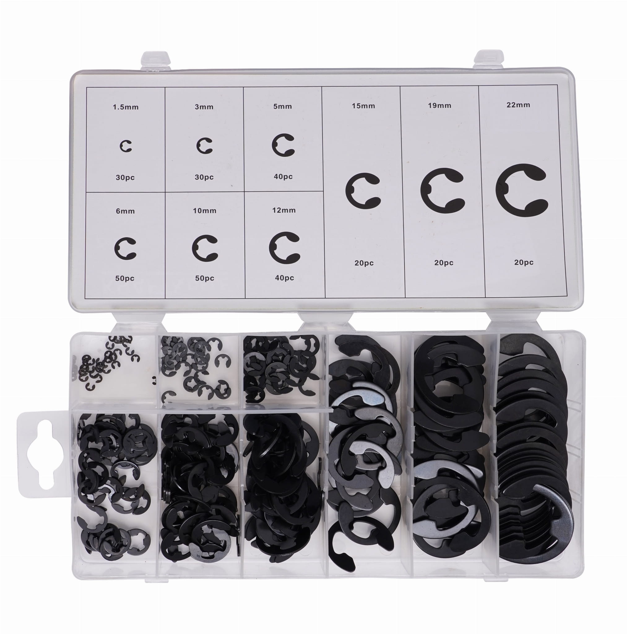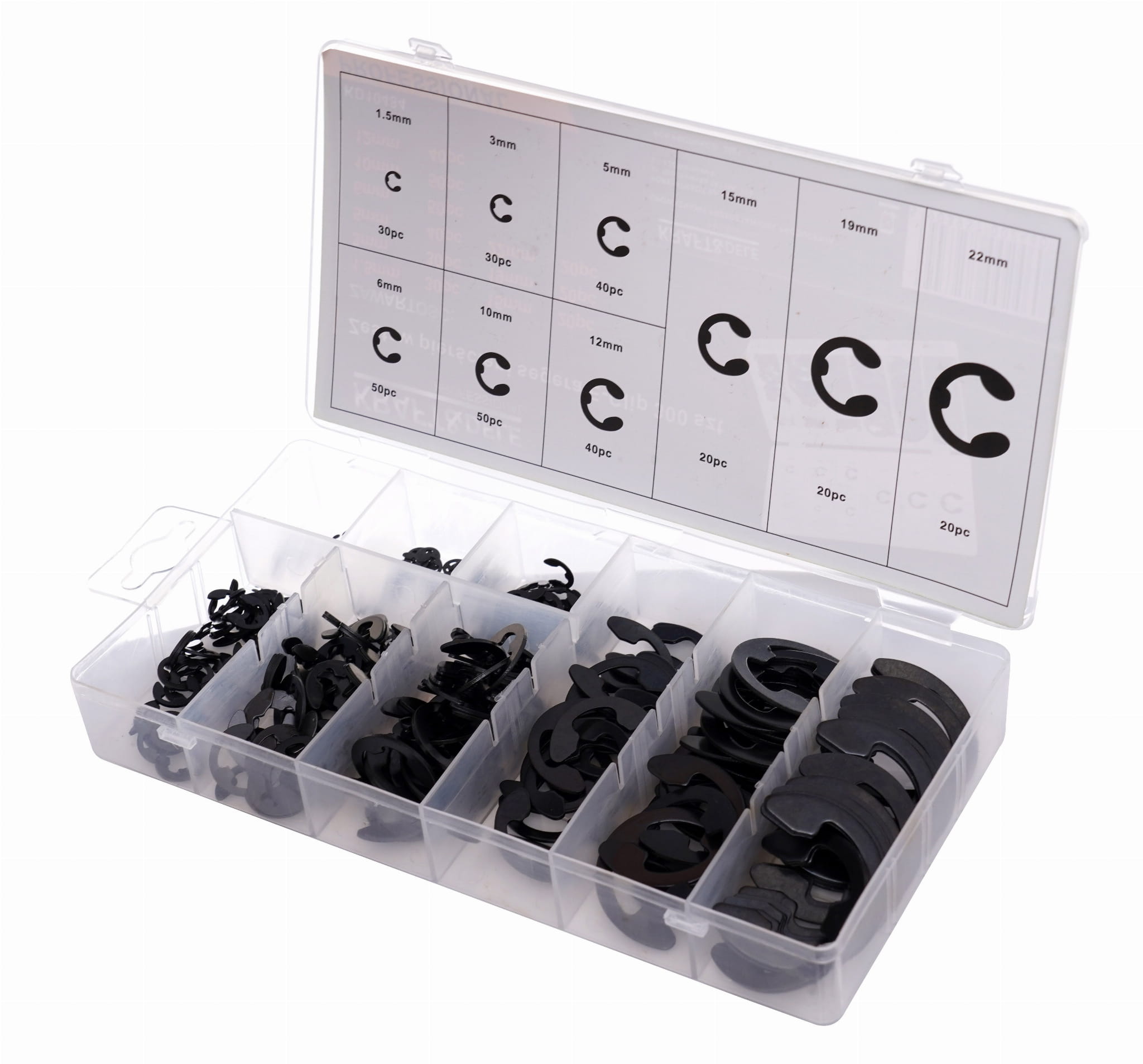Profesjonalny zestaw pierścieni E-CLIPS Kraft&Dele model KD10484 wykorzystuje się do szybkiego zabezpieczania różnych elementów mocowań i zawieszeń.