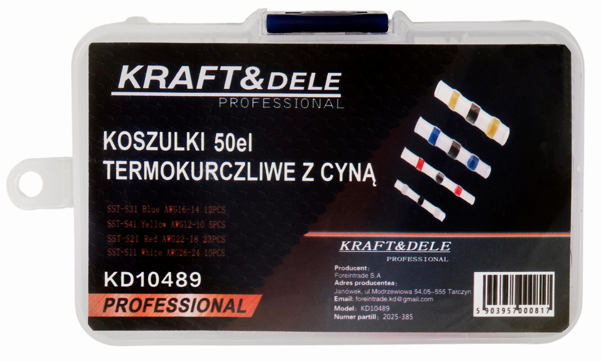 Zestaw koszulek rurek termokurczliwych z cyną polskiej marki Kraft&Dele są idealne do naprawy i łączenia przewodów. Dzięki cynie połączenie przewodów jest trwałe, cyna roztapiając się łączy i zapewnia perfekcyjny styk żył.