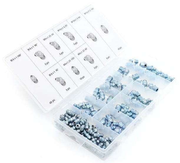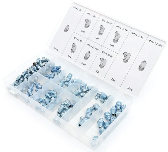 kalamitki; smarowniczki; zestaw kalamitek; smarowniczki m6 m8 m10; kalamitki 45 90 stopni; kalamitki do maszyn; zestaw 110 szt; kraft dele kalamitki;