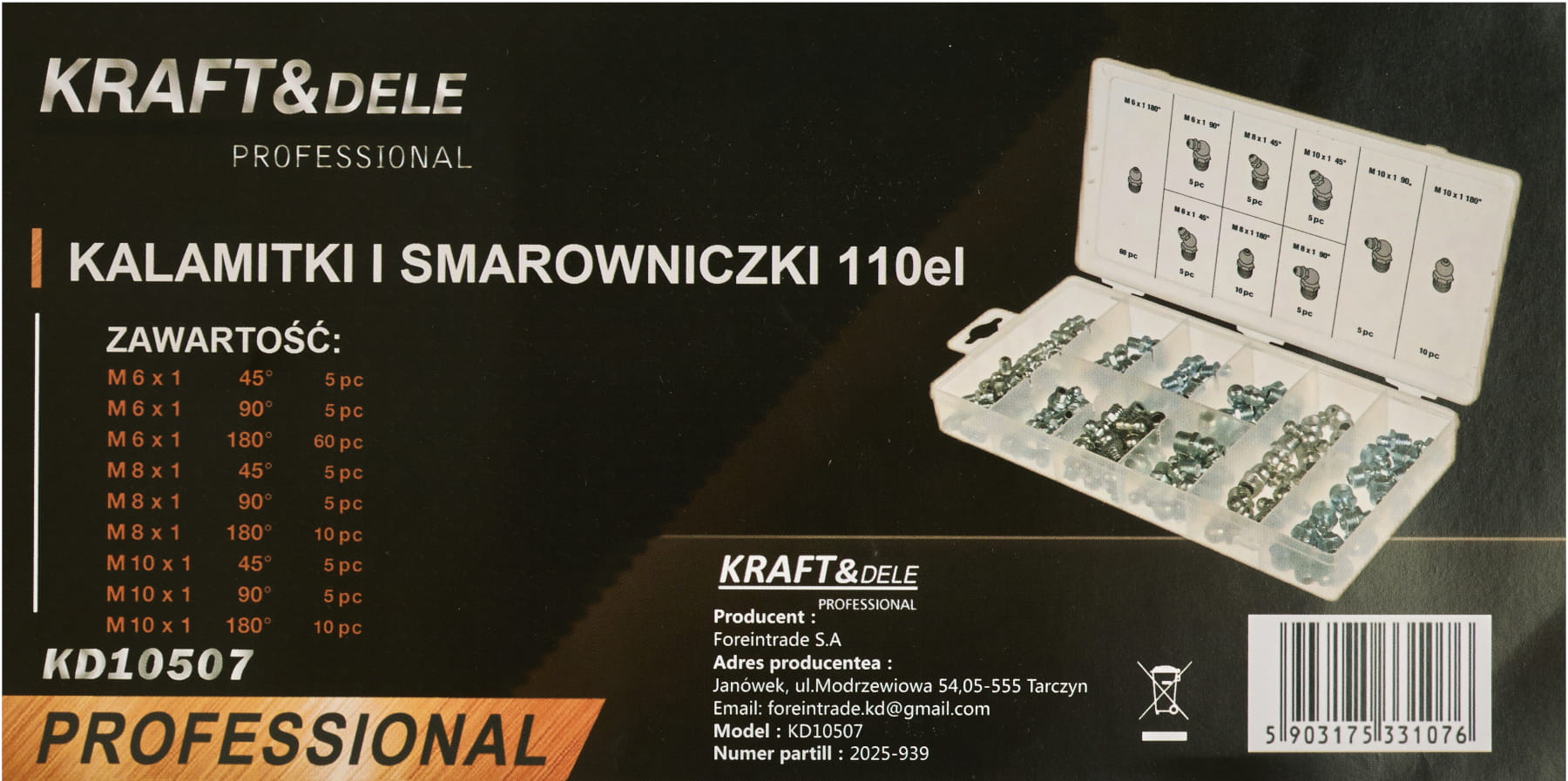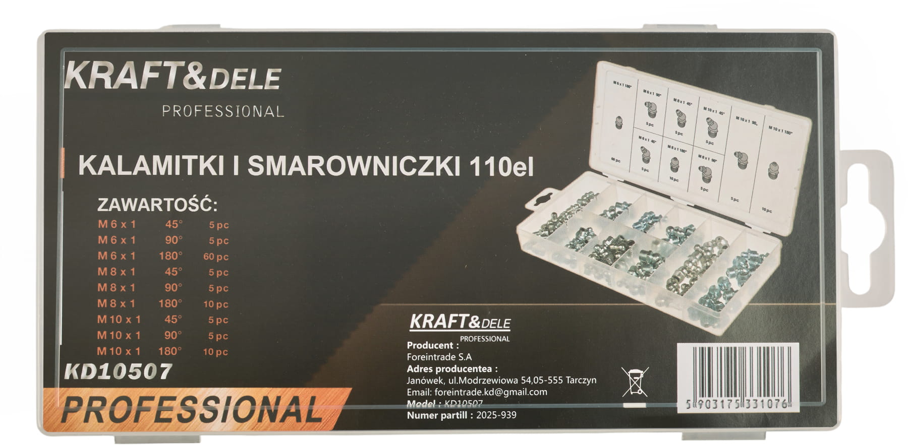 KD10507 to kompletny zestaw kalamitek i smarowniczek marki KRAFT&DELE, przeznaczony do precyzyjnego smarowania maszyn, pojazdów, narzędzi oraz różnego rodzaju mechanizmów technicznych. Dzięki różnorodnym typom gwintów i kątów mocowania zestaw sprawdzi się zarówno w profesjonalnych warsztatach, jak i w domowych pracowniach majsterkowicza.