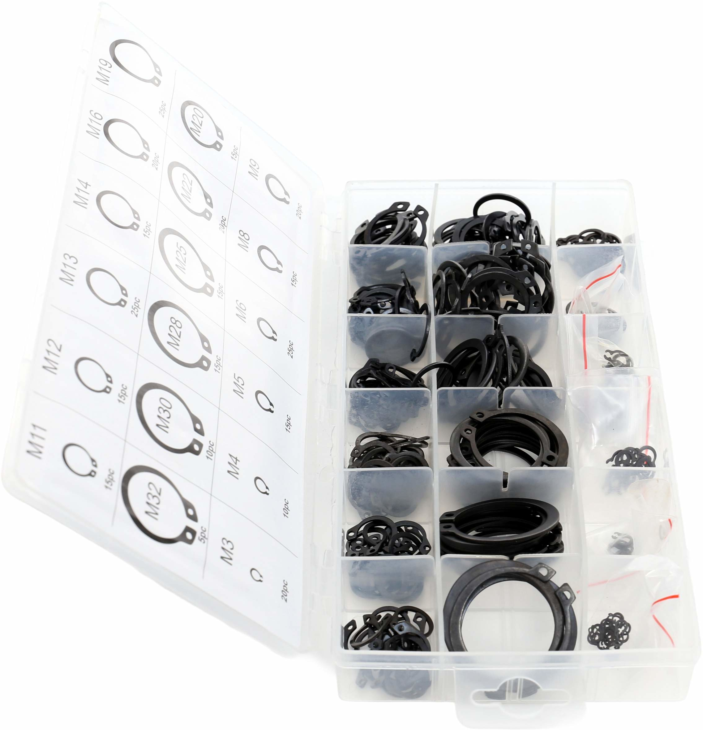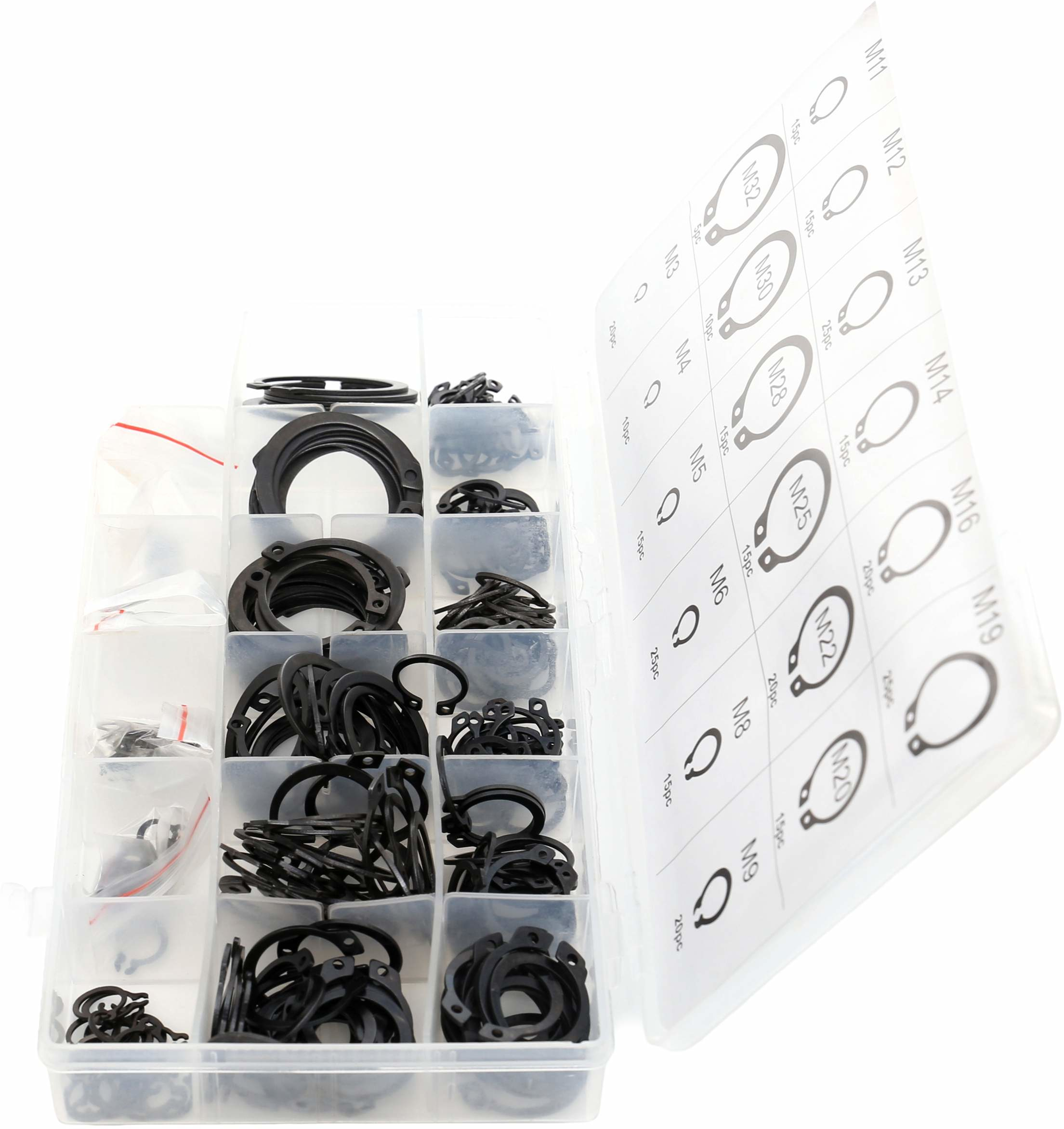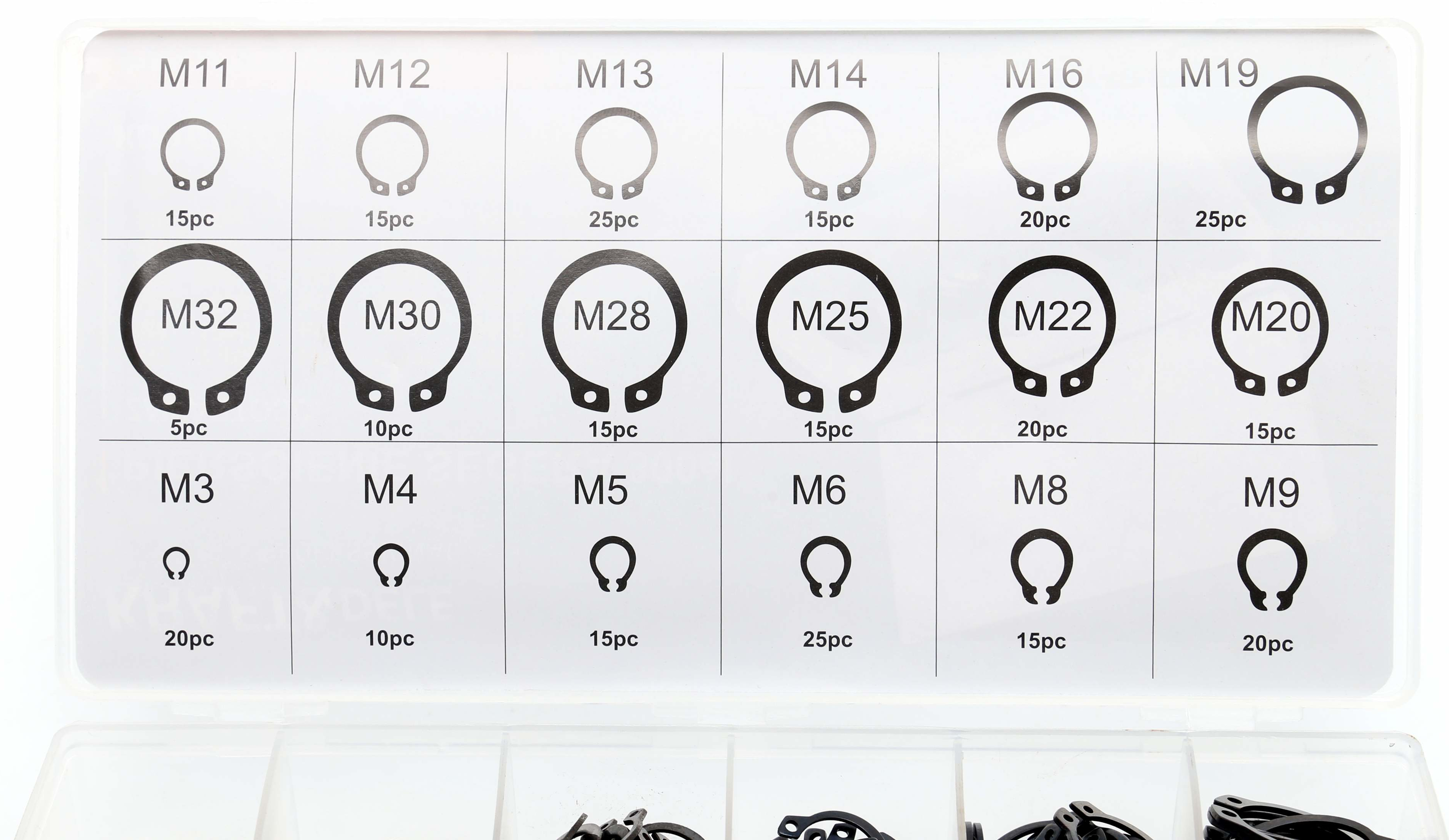Pierścienie wykonane są z wysokiej jakości stali sprężystej, dzięki czemu charakteryzują się dużą wytrzymałością oraz odpornością na odkształcenia. Całość zapakowana jest w wygodny organizer z przegródkami, który umożliwia łatwe sortowanie i szybki dostęp do odpowiednich rozmiarów podczas pracy. Zestaw idealnie sprawdzi się w warsztatach, serwisach oraz przy pracach montażowych i naprawczych.
