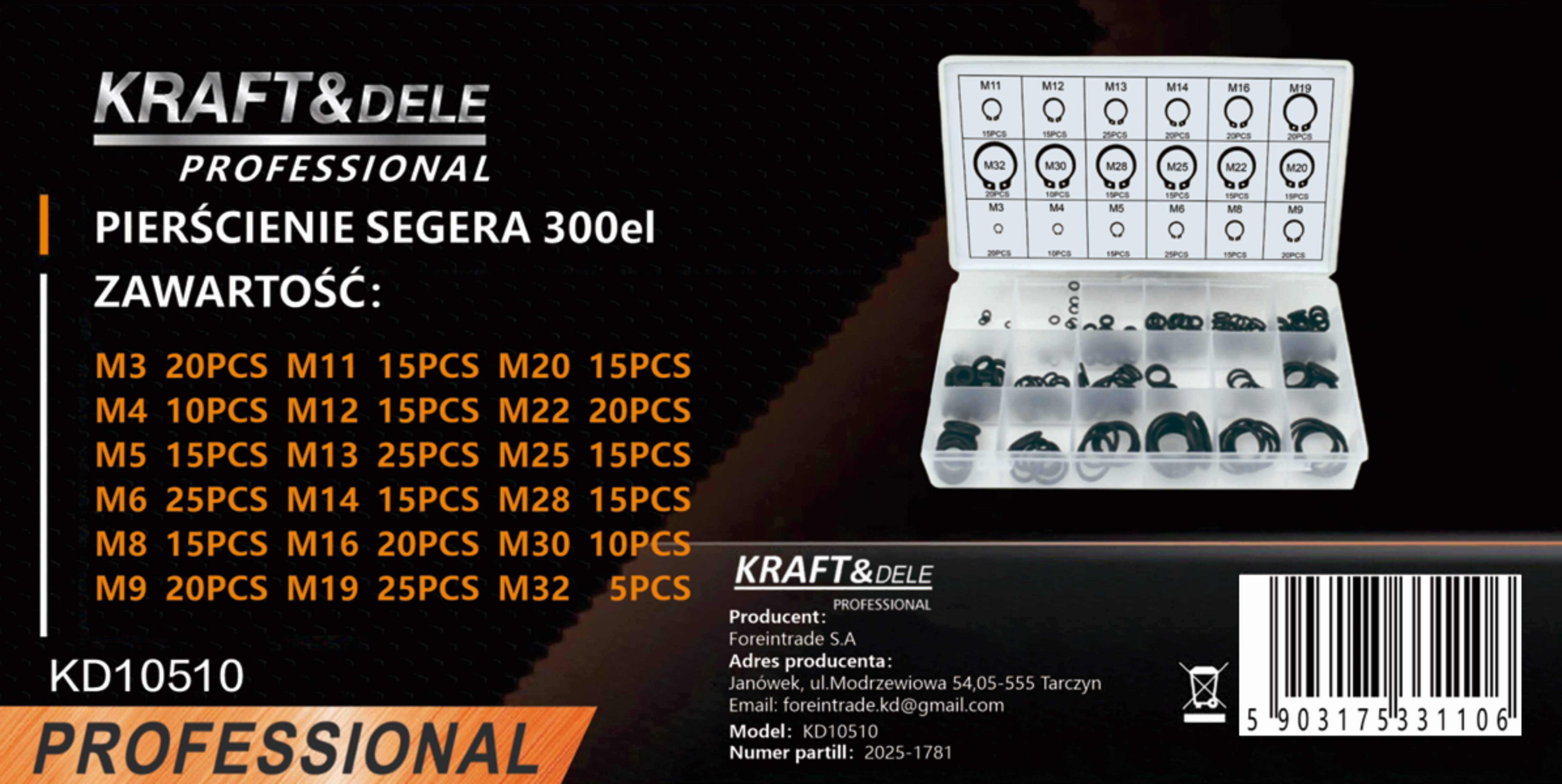 Zestaw pierścieni segera KD10510 marki KRAFT&DELE to praktyczny komplet przeznaczony do zabezpieczania elementów na wałkach i w otworach w różnego rodzaju urządzeniach mechanicznych. Zawiera aż 300 sztuk zewnętrznych pierścieni segera w wielu rozmiarach, co pozwala na dopasowanie odpowiedniego elementu do konkretnego zastosowania.