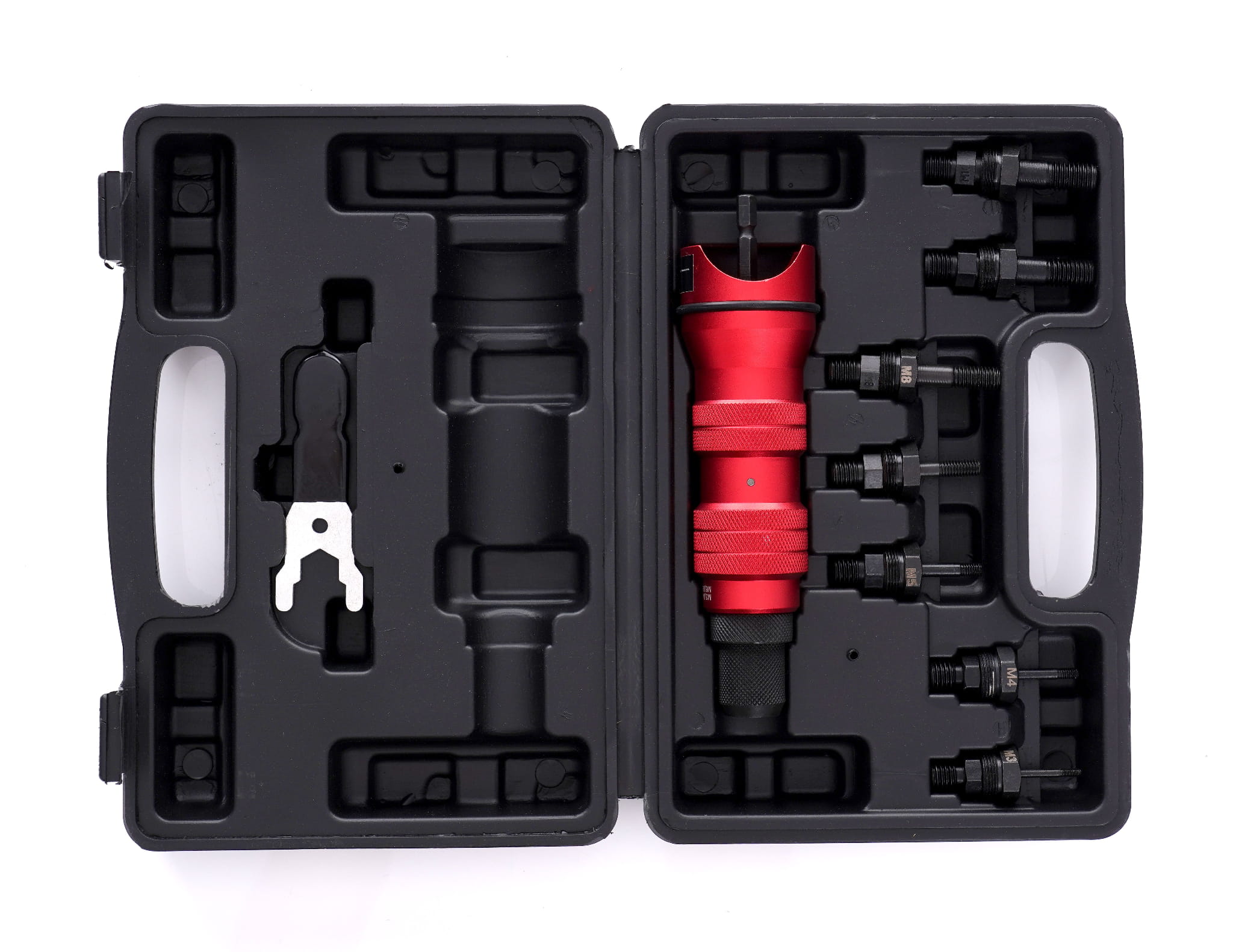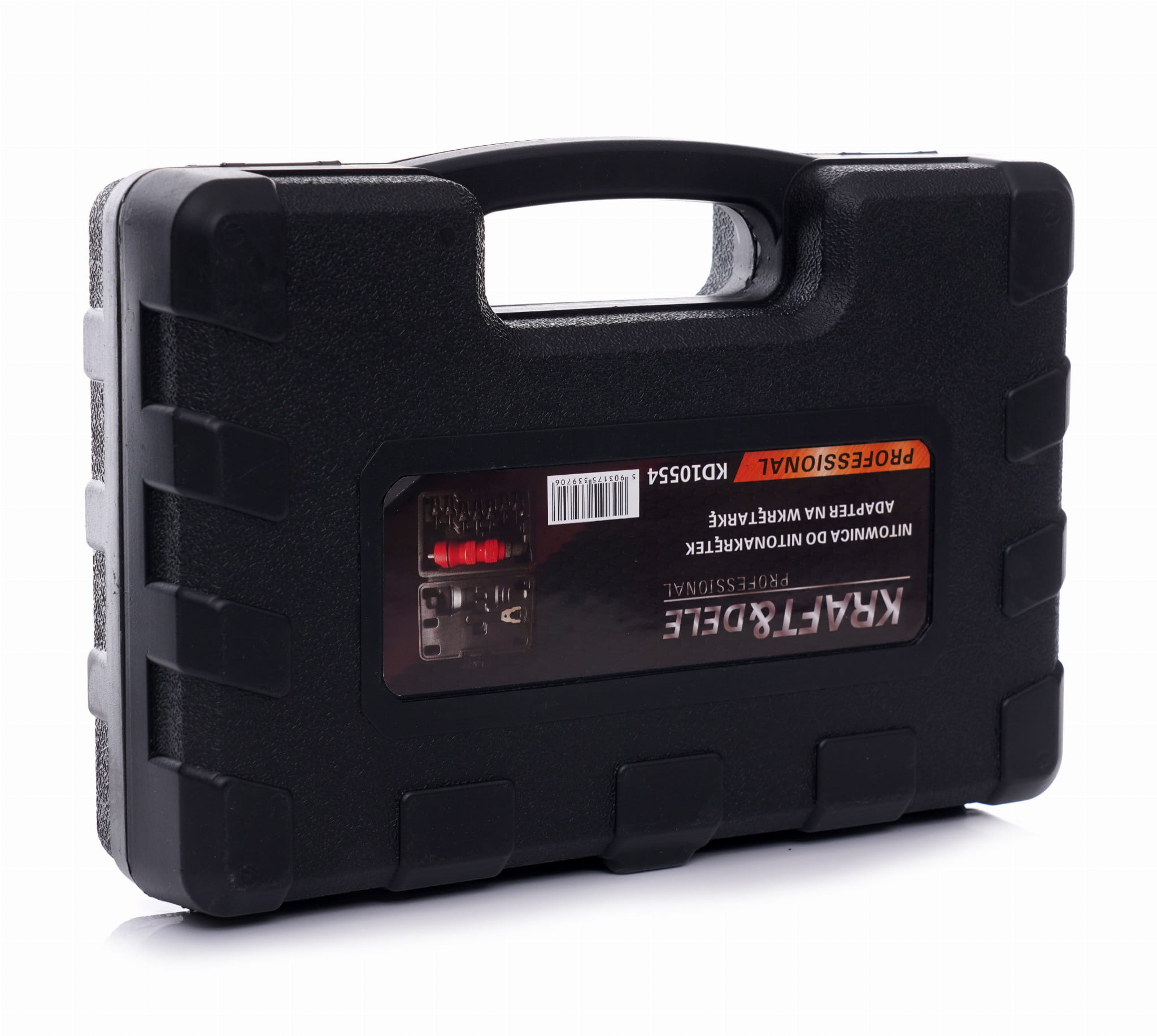 Całość zapakowana jest w wygodnej, poręcznej walizce. Nadaje się do nitów: aluminium, miedź, stal, stal nierdzewna.