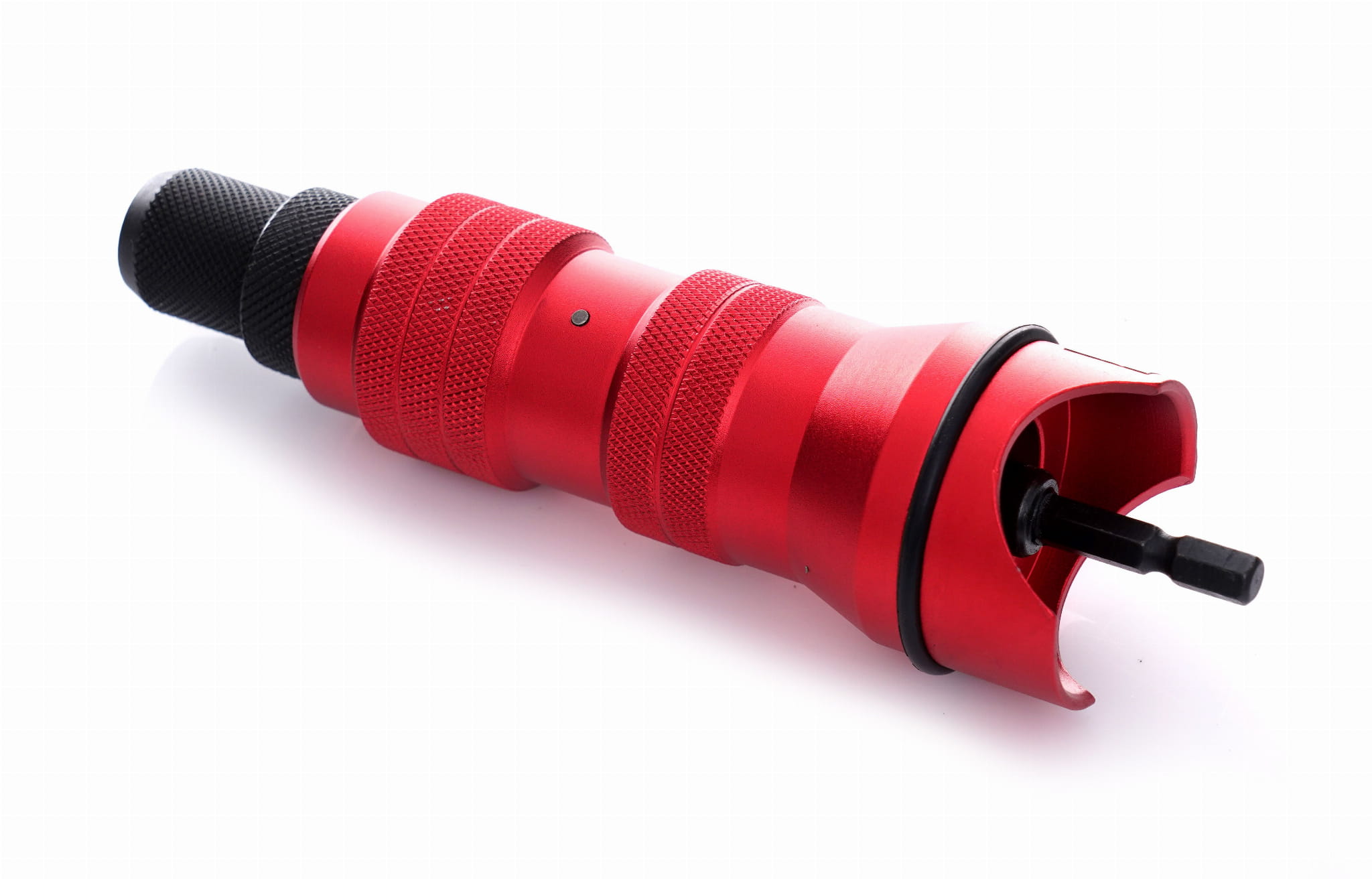 Idealne narzędzie do pracy mobilnej gdzie nie ma stałego dostępu do instalacji powietrznej. Zastępuje nitownice pneumatyczne jak i ręczne. Idealnie współpracuje z wkrętarkami akumulatorowymi jak i wiertarkami z zasilaniem sieciowym. Adapter pasuje do każdej standardowej wkrętarki lub wiertarki.