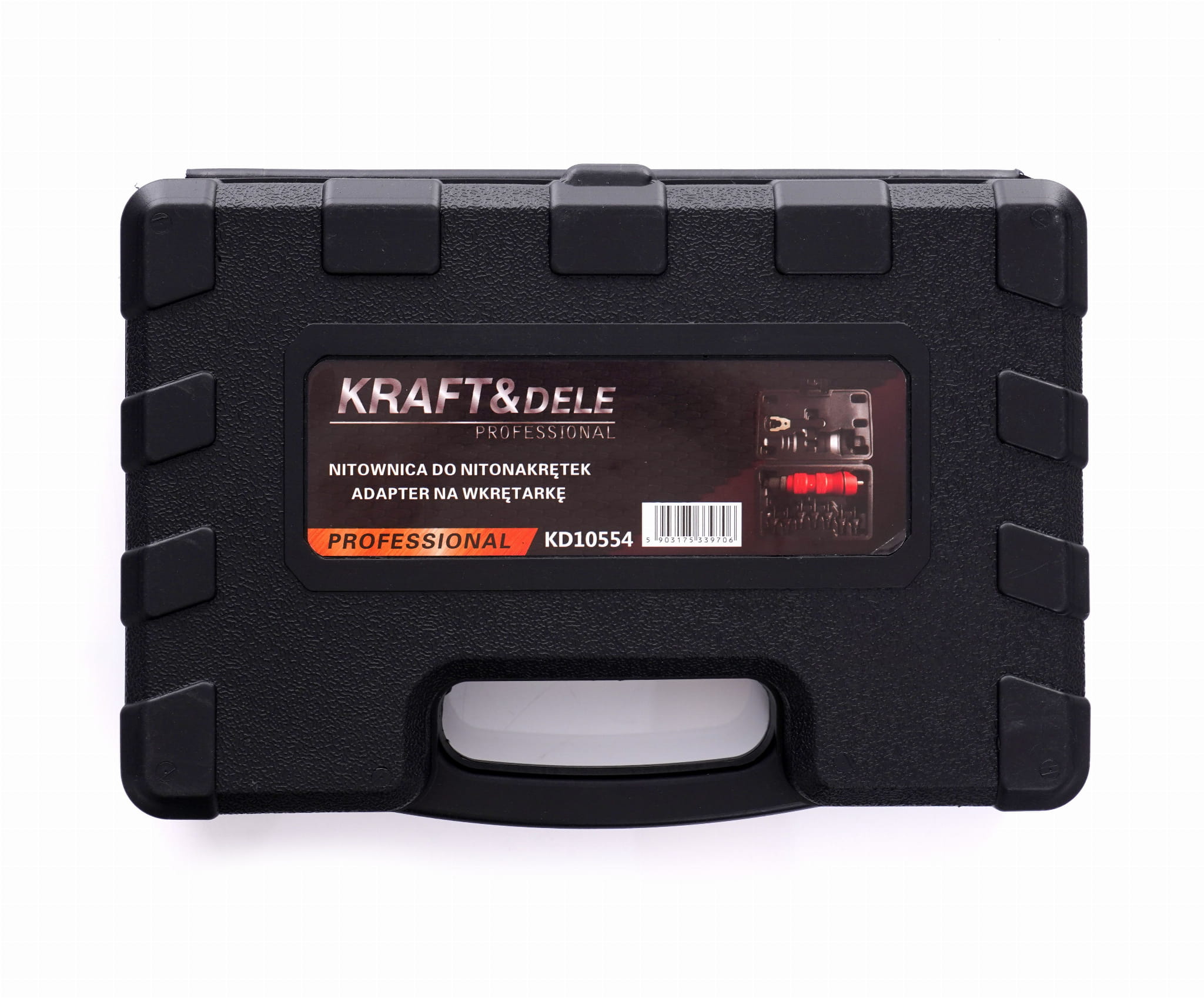 Profesjonalna nitownica ręczna model KD10554 polskiej marki KRAFT&DELE. Wykonana z najwyższej jakości materiałów, w tym stali oraz aluminium.