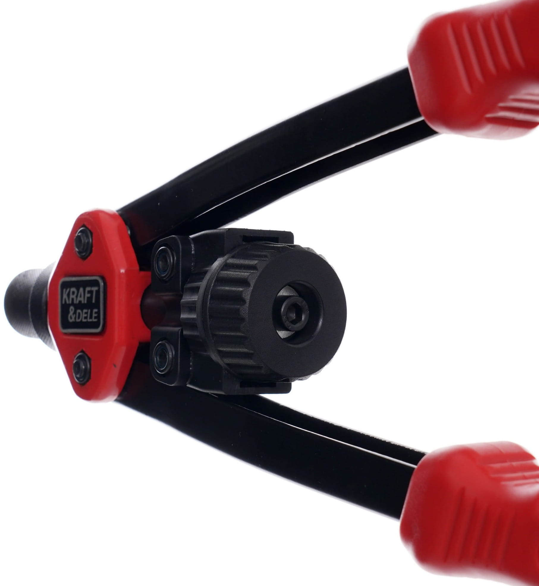 Model KD10556 idealnie sprawdza się przy osadzaniu nitów gwintowanych w cienkich materiałach takich jak blacha, tworzywa sztuczne czy włókno szklane. Ergonomiczna konstrukcja, długie ramiona oraz gumowane rękojeści znacząco poprawiają komfort pracy i ograniczają zmęczenie użytkownika. Wewnętrzna stała tuleja przesuwna ułatwia wymianę śrub, a sprężynowy mechanizm automatycznie otwiera nitownicę po zakończeniu pracy. Całość zapakowana jest w poręczną walizkę, ułatwiającą transport i przechowywanie.
