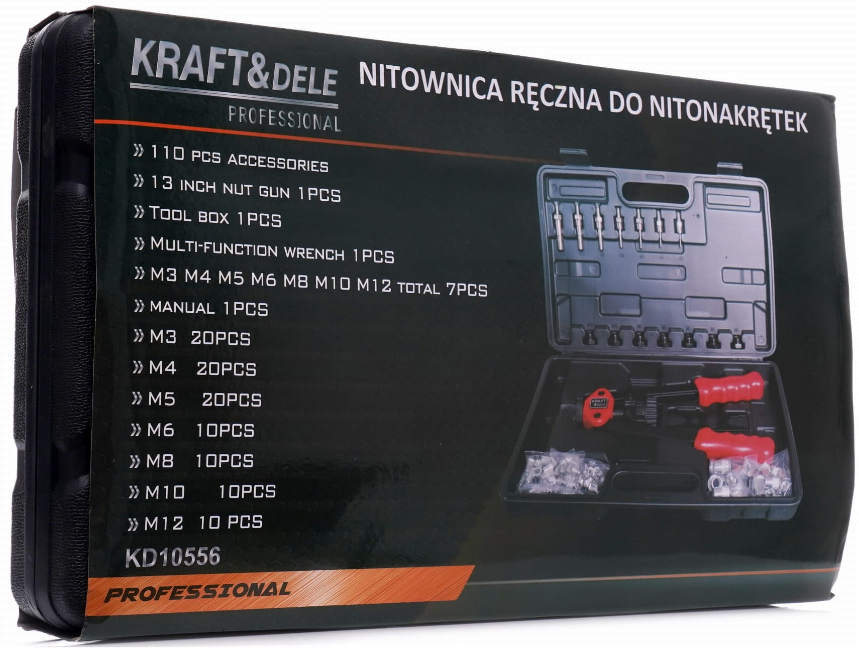 Nitownica ręczna; nitownica do nitonakrętek; nitownica gwintowana; nitownica KD10556; nitownica M3 M10; zestaw nitownica; narzędzie do nitów; nitownica w walizce;