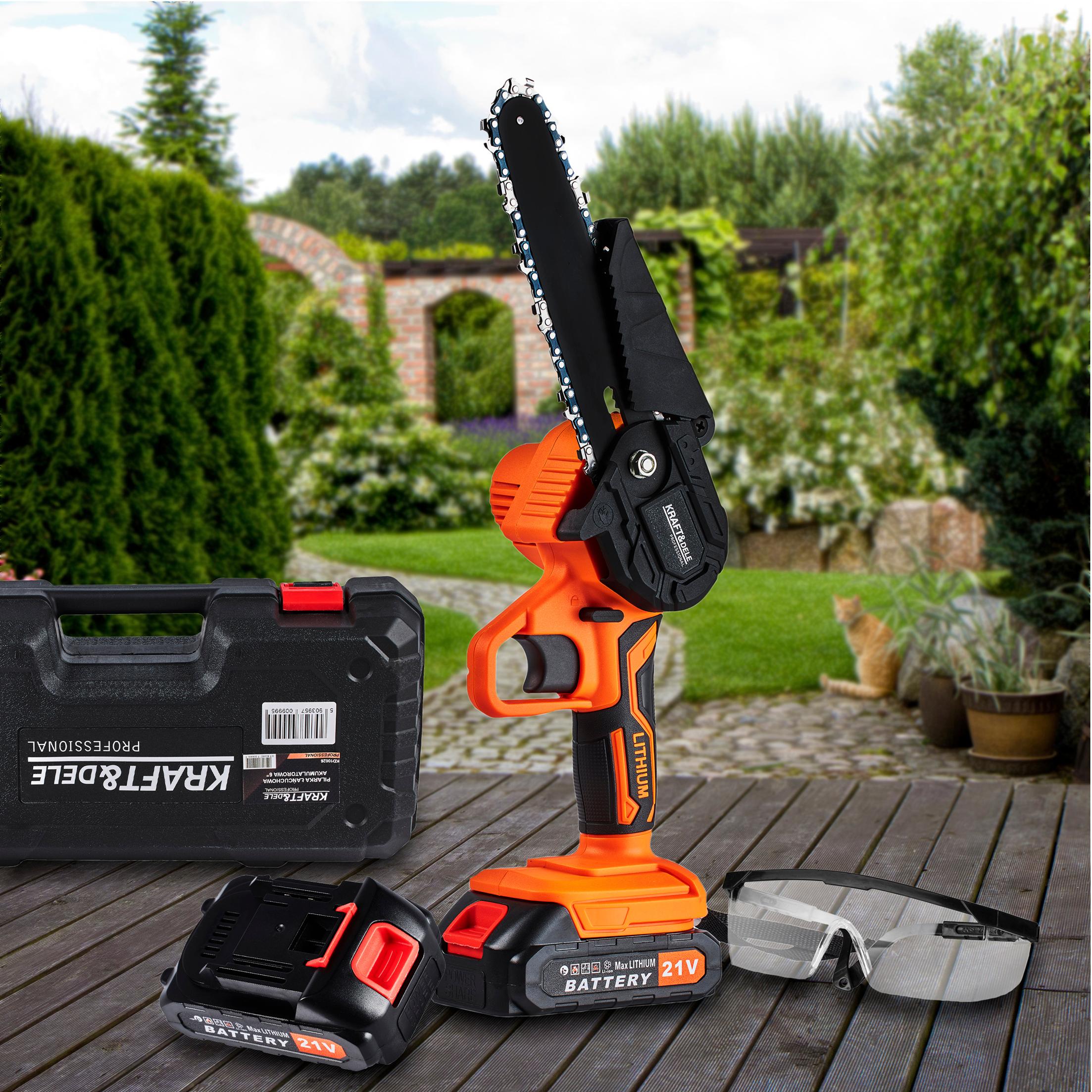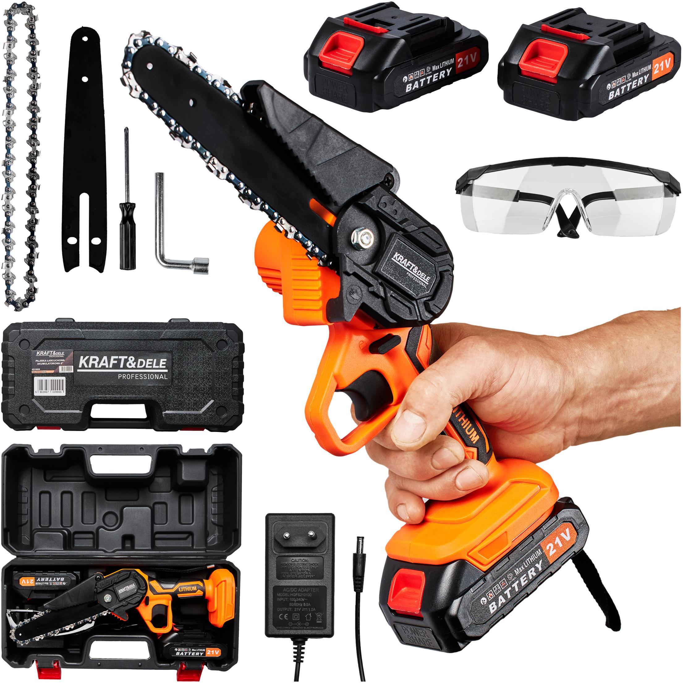 Piła łańcuchowa akumulatorowa; mini pilarka akumulatorowa; piła bezprzewodowa; pilarka do drewna akumulatorowa; piła ręczna elektryczna; mała piła 6 cali; pilarka ogrodowa akumulatorowa; piła do gałęzi; mini chainsaw; piła KRAFT&DELE;