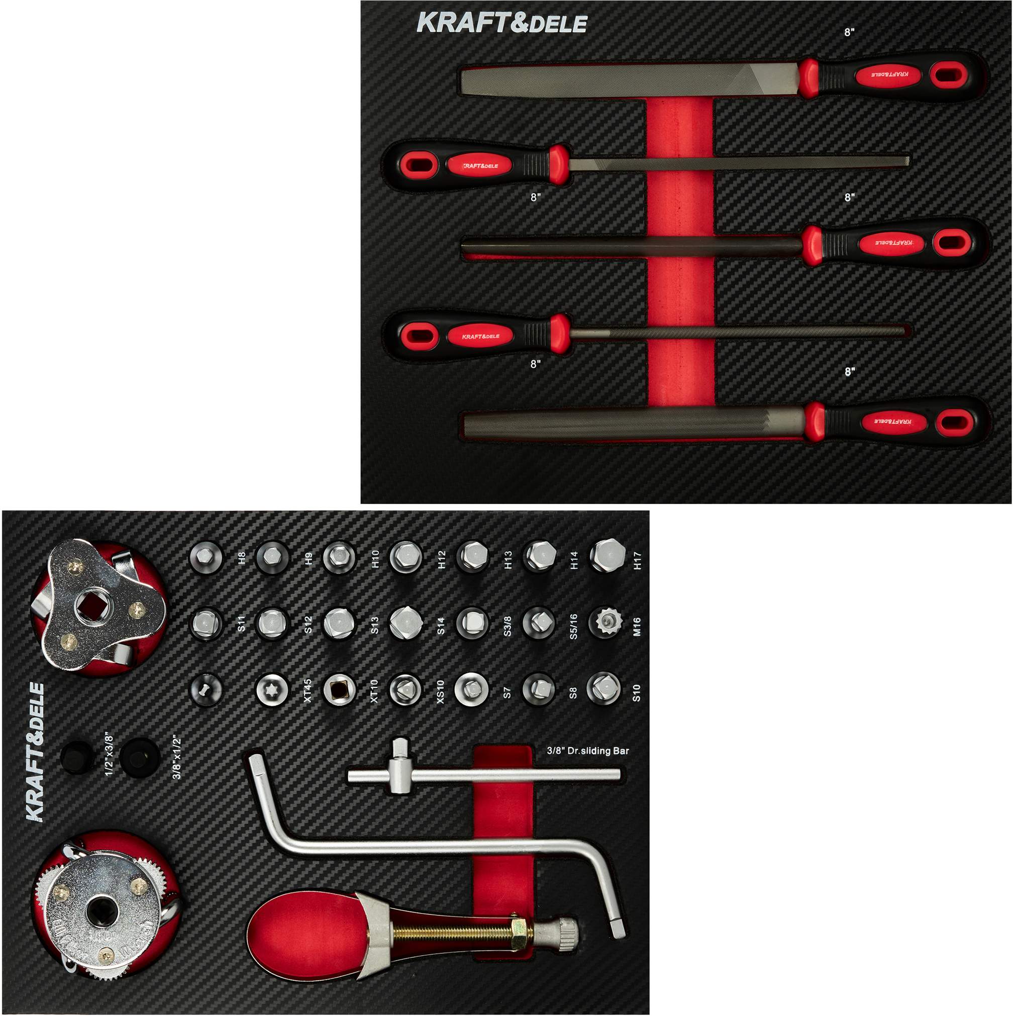 Szafka narzędziowa Kraft&Dele KD1063 to kompleksowe rozwiązanie dla warsztatu, garażu oraz wszystkich osób ceniących porządek i funkcjonalność w miejscu pracy. Zestaw zawiera aż 479 elementów wysokiej jakości, które umożliwiają wykonywanie szerokiego zakresu prac z precyzją i wygodą.