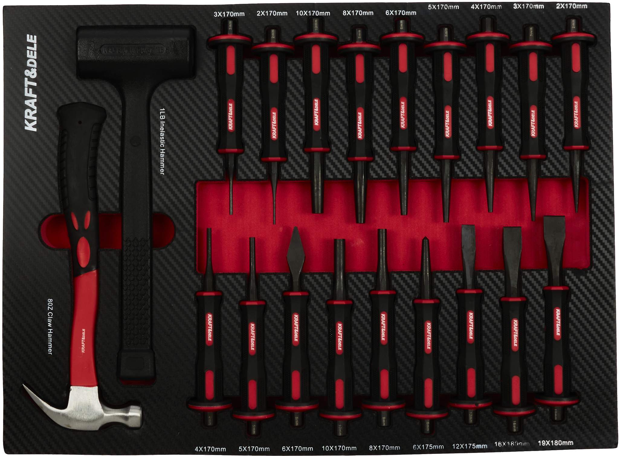 Młotek ślusarski 300g Młotek blacharski ABS 300 mm Komplet przecinaków i wybijaków z osłoną gumową (18 sztuk) |
