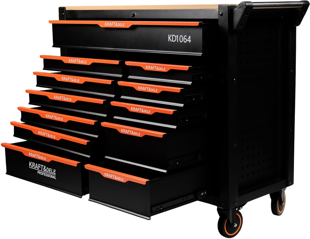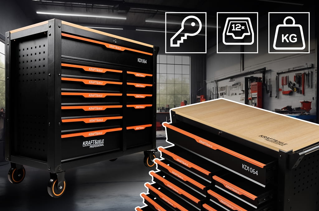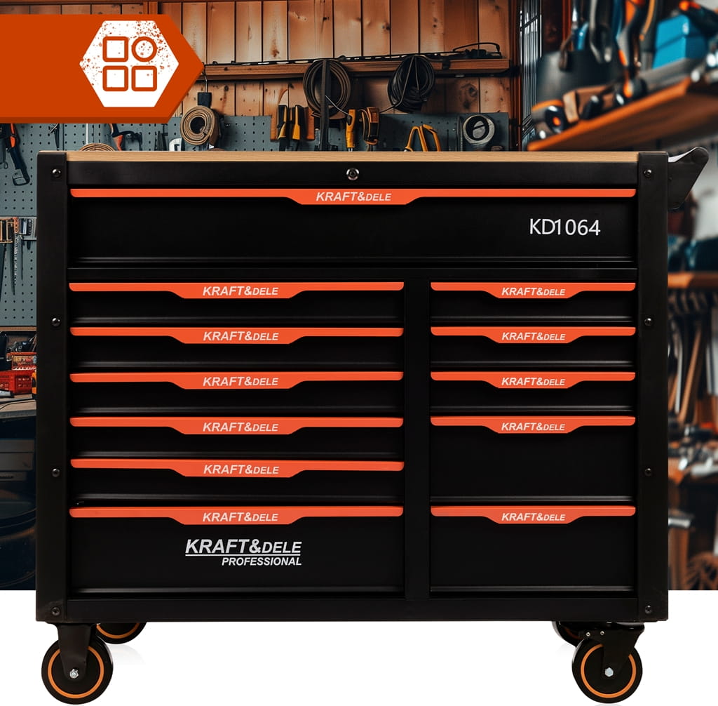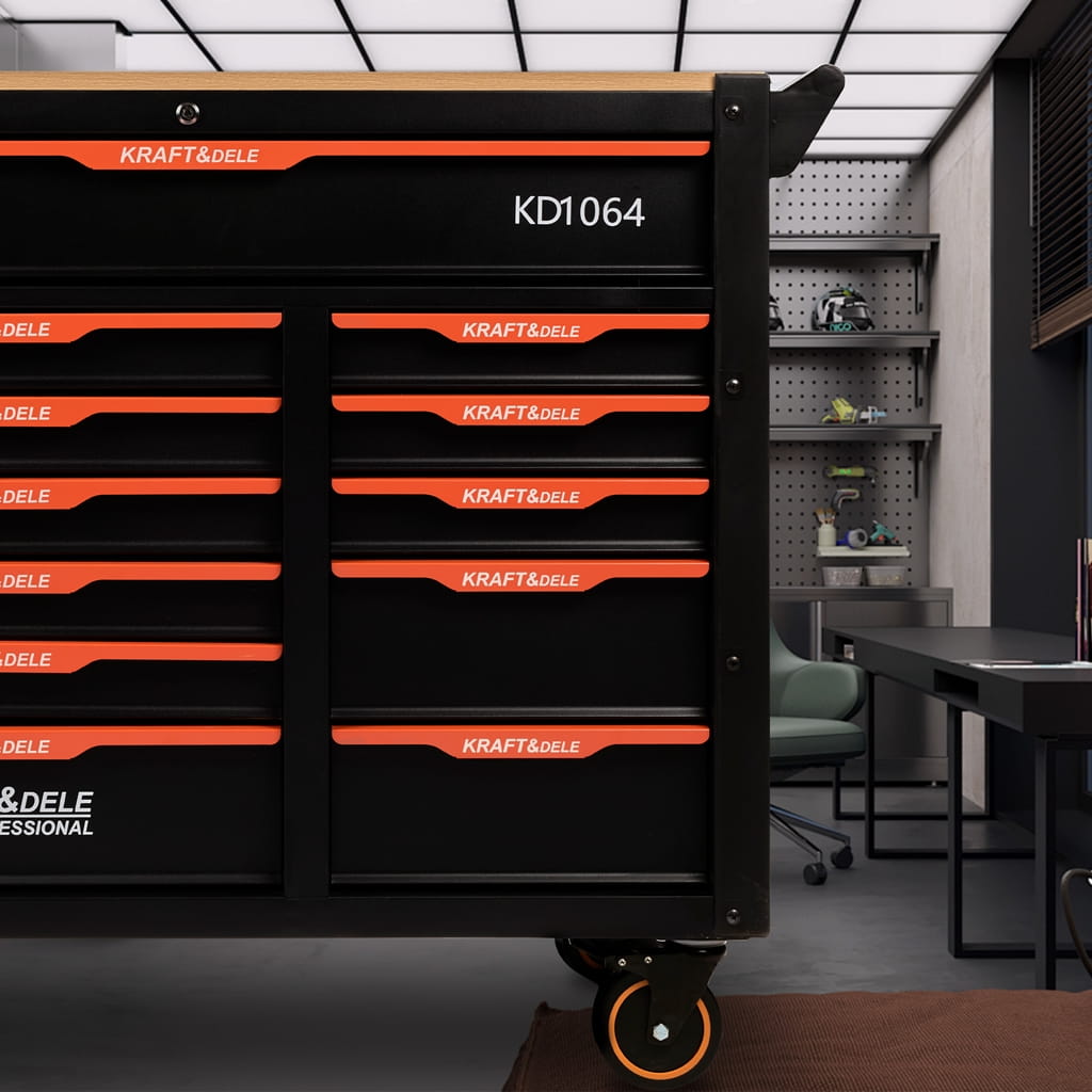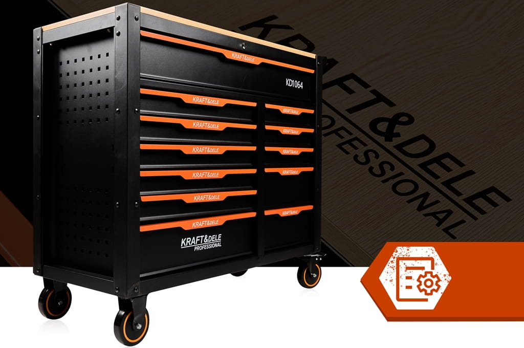 KD1064 to solidna i funkcjonalna szafka narzędziowa marki KRAFT&DELE, zaprojektowana z myślą o profesjonalnych warsztatach oraz przydomowych garażach. Dzięki dużej liczbie szuflad oraz przemyślanej konstrukcji umożliwia wygodne przechowywanie i organizację narzędzi, zapewniając porządek i szybki dostęp do potrzebnego wyposażenia.