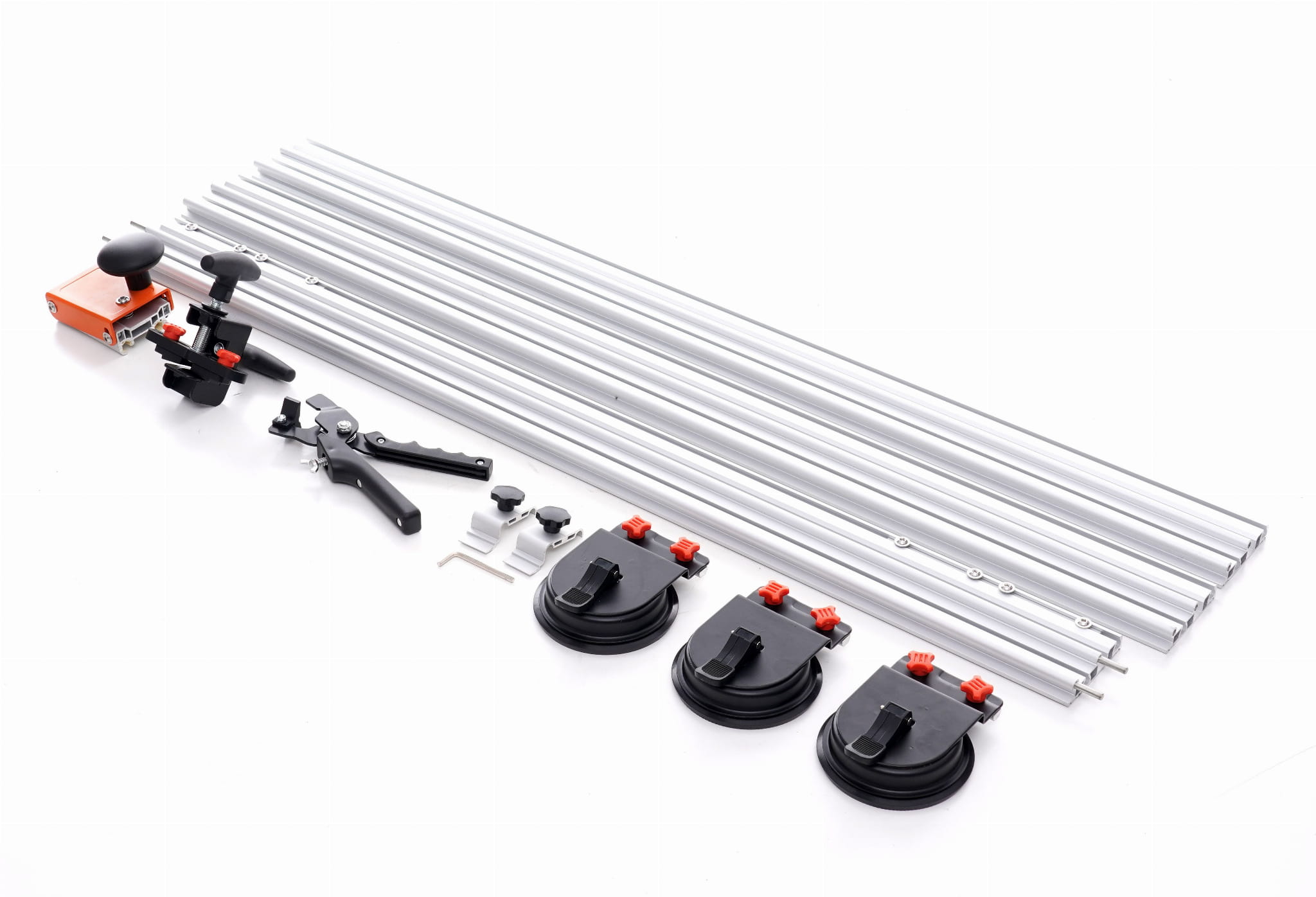 Zestaw do cięcia płytek dużych formatów polskiej marki Kraft&Dele jest niezbędny w precyzyjnym cięciu każdego rodzaju płytek. Sylikonowe podkładki i przyssawki mocujące zapobiegają przypadkowemu przesunięciu się prowadnicy podczas cięcia. Solidne i stabilne wykonanie pozwala na wykorzystanie urządzenia przy pracach remontowych i wykończeniach glazurniczych na poziomie amatorskim i profesjonalnym. Przyrząd charakteryzuje łatwość obsługi i poręczność - całość zapakowana w poręczną torbę na ramię!