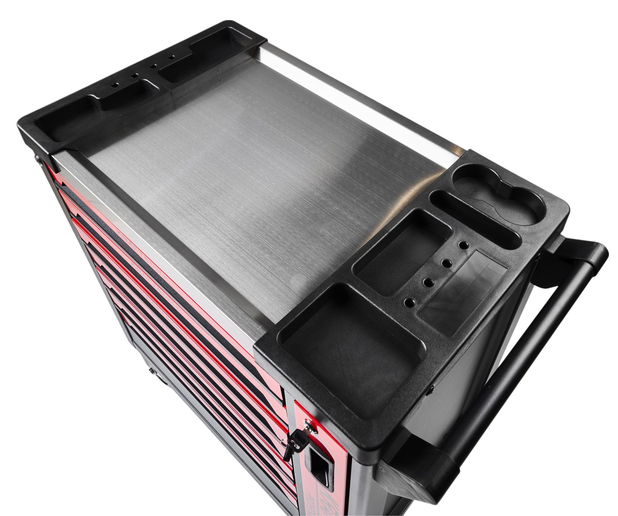 Posiada 9 pojemnych szuflad. Szuflady posiadają prowadnice oraz kulkowy mechanizm ślizgowy ułatwiają wysuwanie. Dodatkowo każda z szuflad posiada blokadę. Wózek wyposażony w 2 skrętne kółka, które mają automatyczną blokadę oraz hamulec, dzięki któremu przemieszczenie się szafy jest niemożliwe. Zapewnia komfort bezpieczeństwa nawet na małych pochyłościach.