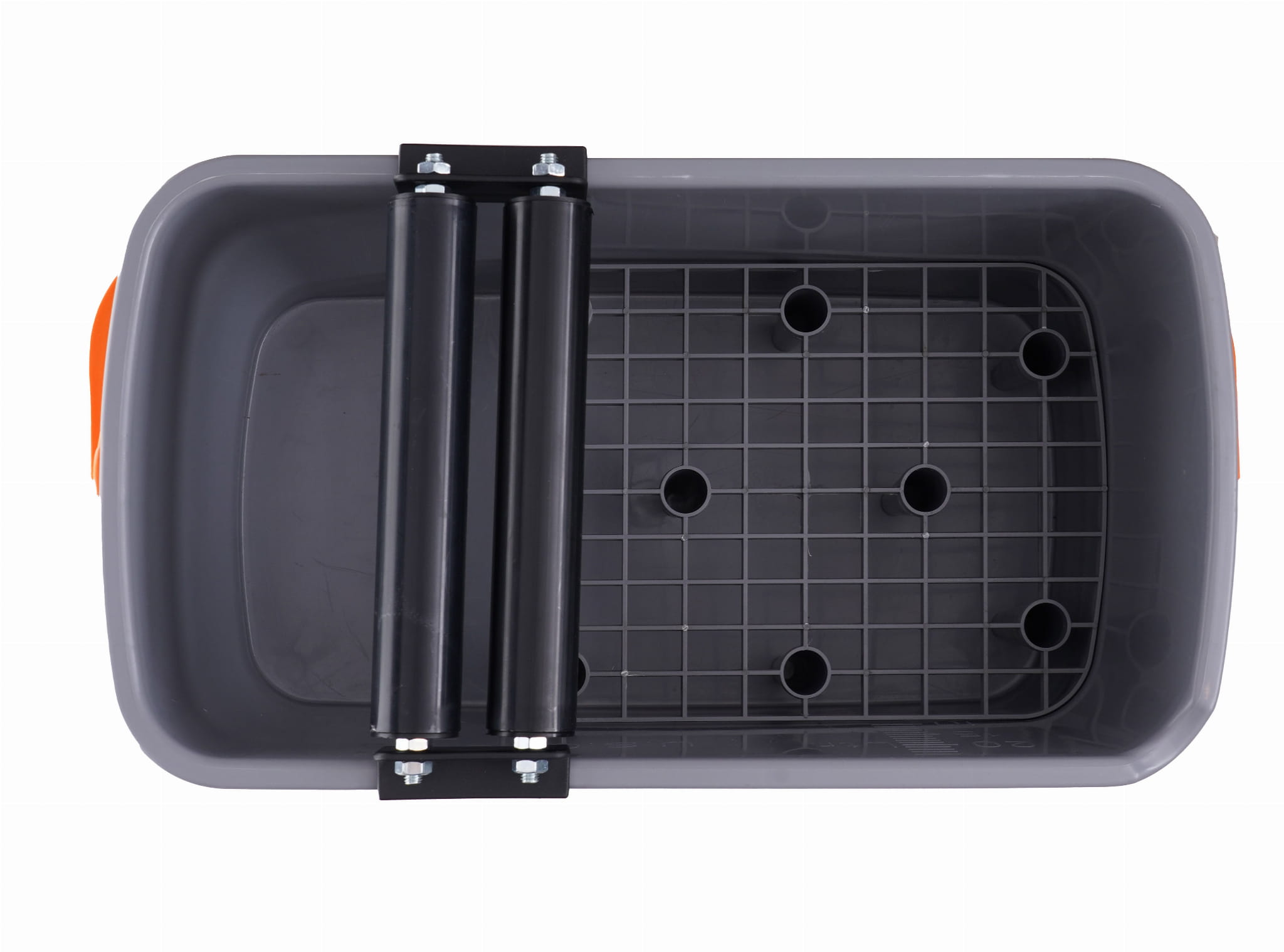 Przenoszenie wiadra przebiega sprawnie ponieważ, zostało wyposażone w wygodny uchwyt. Do zestawu dodano także kratkę na stabilnych nóżkach, co powoduje bardziej efektywny proces mycia. Pozostałości po fugowaniu zbieramy za pomocą pacy z gąbką.