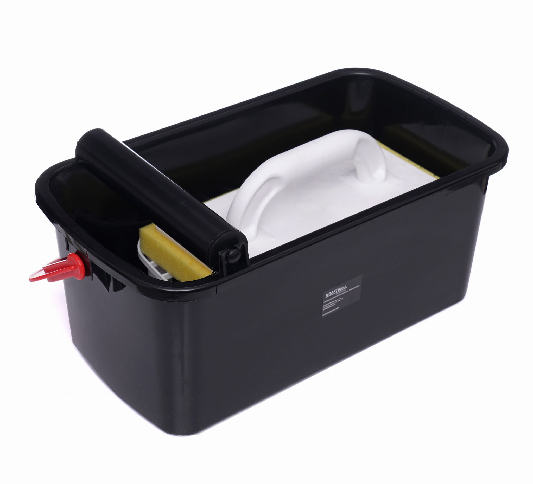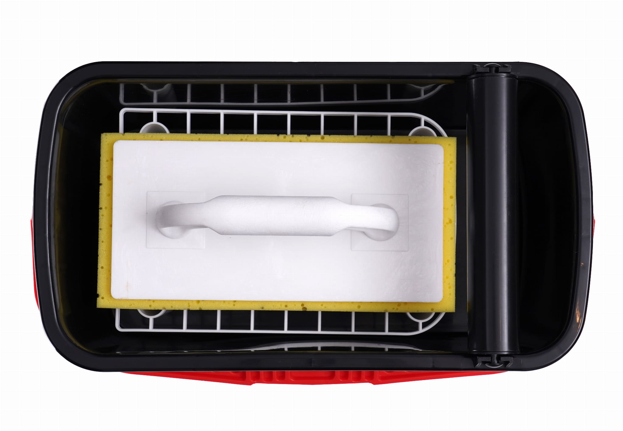 Przenoszenie wiadra przebiega sprawnie ponieważ, zostało wyposażone w wygodny uchwyt. Do zestawu dodano także kratkę na stabilnych nóżkach, co powoduje bardziej efektywny proces mycia. Pozostałości po fugowaniu zbieramy za pomocą pacy z gąbką.