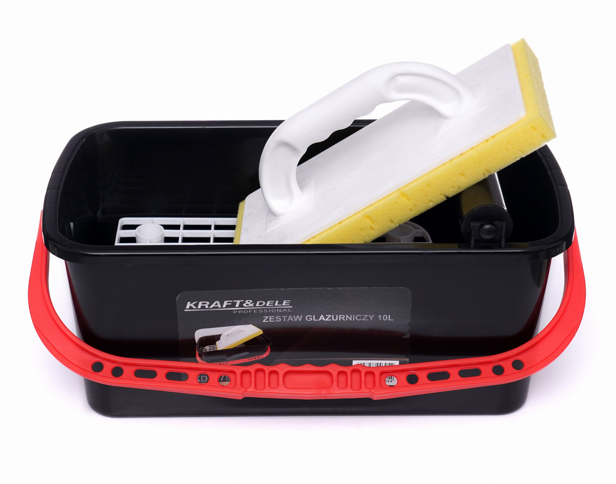 Zestaw glazurniczy marki Kraft&Dele model KD10786 umożliwia sprawne wykonanie prac glazurniczych. Został wykonany z wysokiej jakości tworzywa sztucznego. Wiadro posiada rolkę na wcisk, dzięki której z łatwością usuniesz nadmiar wody z gąbki.