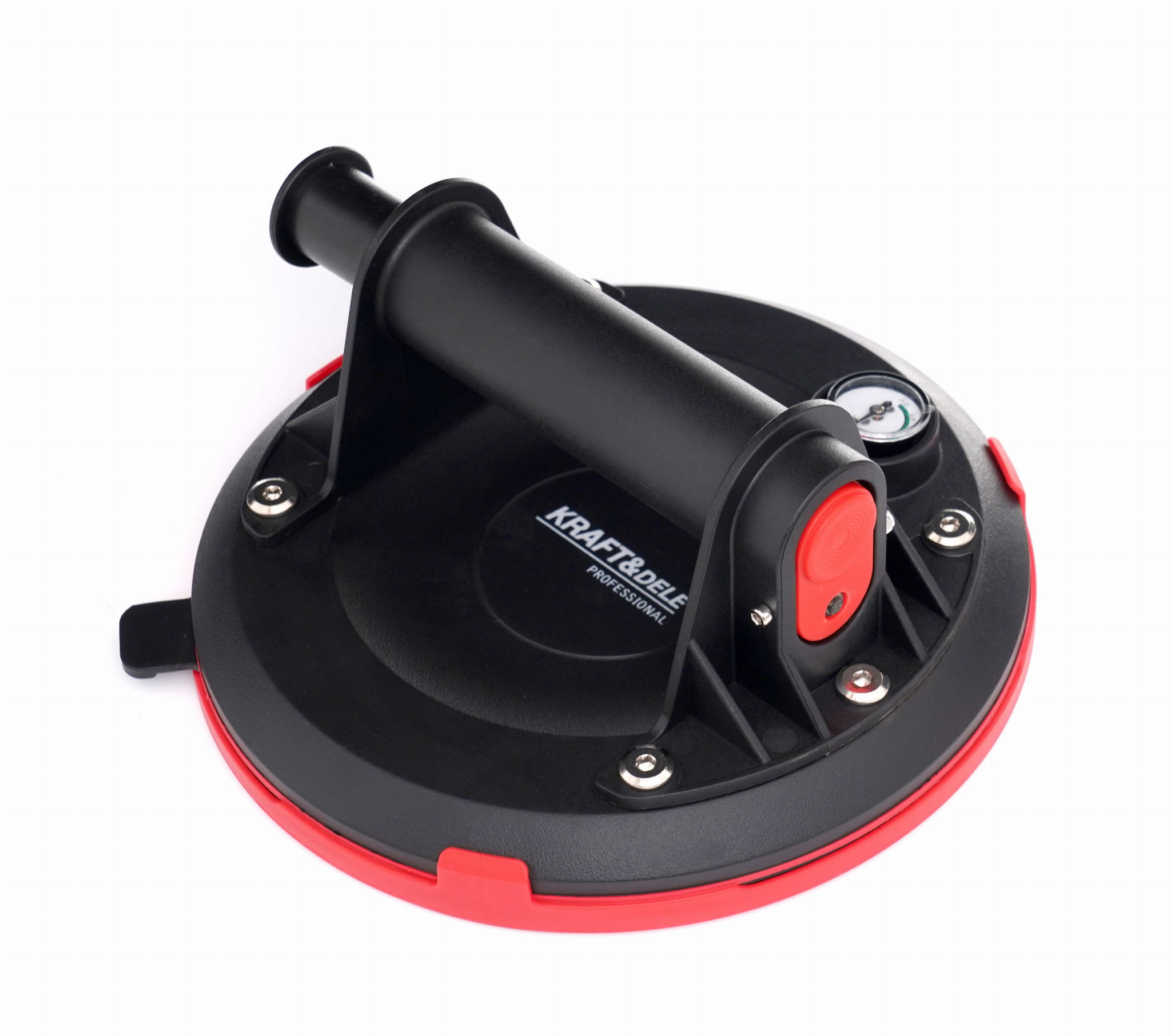 Przyssawka polskiej marki Kraft&Dele model KD10793. Wyposażona jest w pompkę próżniową dla mocniejszego chwytu oraz przycisk do jej szybkiego zwalniania. Przeznaczona do przenoszenia różnych elementów o gładkiej powierzchni np. szyb, okien, szyb samochodowych, arkuszy blach, laminatów itp., których waga nie przekracza 190kg. Aluminiowy korpus i guma przyssawka zapewniają bezpieczne i pewne przenoszenie elementów.  Szerokie zastosowanie ułatwi pracę zarówno profesjonalistom jak i amatorom.