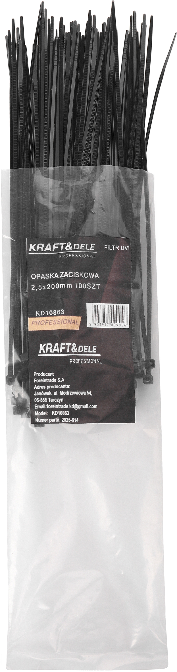 KD10863 to zestaw opasek zaciskowych marki KRAFT&DELE, wykonanych z wysokiej jakości nylonowego tworzywa. Przeznaczone są do łączenia i organizacji przewodów, kabli, węży oraz innych elementów w instalacjach elektrycznych, mechanicznych i warsztatowych.