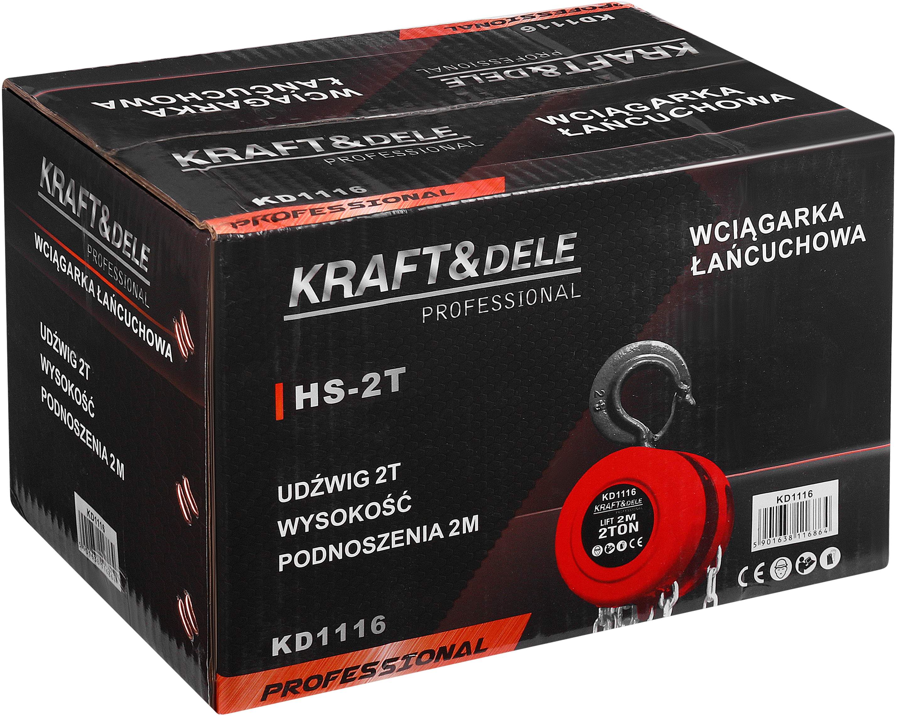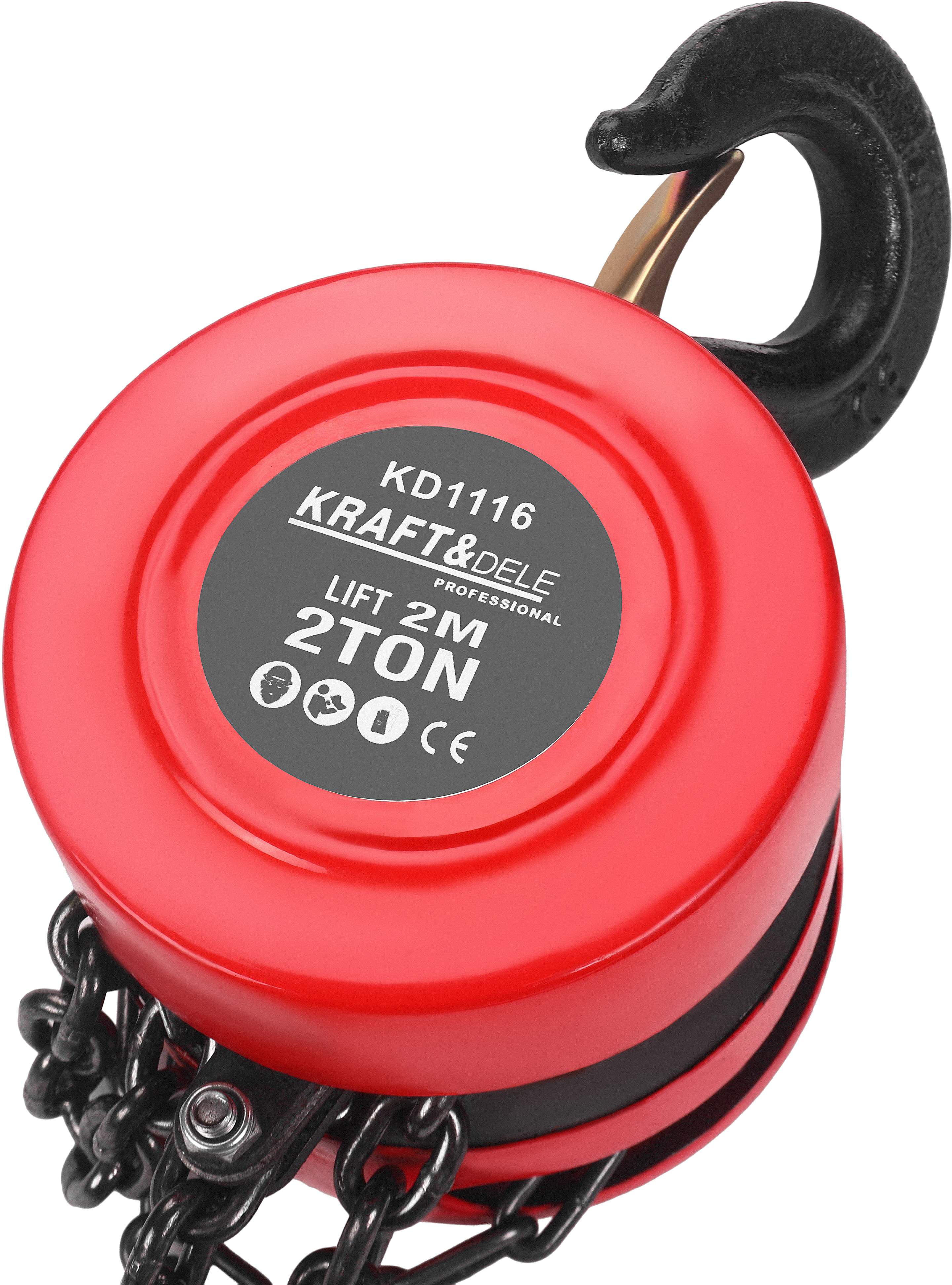 Wyciągarka łańcuchowa KD1116 marki KRAFT&DELE to solidne i niezawodne urządzenie ręczne o udźwigu do 2 ton, przeznaczone do podnoszenia, opuszczania oraz przemieszczania ciężkich ładunków. Dzięki wysokości podnoszenia wynoszącej 2 metry doskonale sprawdzi się w warsztatach, magazynach, na budowach oraz w gospodarstwach rolnych, wszędzie tam gdzie wymagane jest bezpieczne operowanie ciężkimi elementami bez dostępu do zasilania elektrycznego.