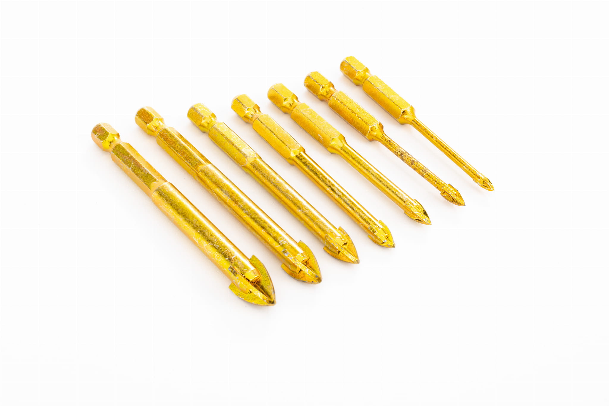 Wykonane zostały z stali z węglika wolframu, co dodatkowo zabezpiecza wiertło przed zbyt szybkim zużyciem. Element wiercący składa się z czterech ostrzy tnących.