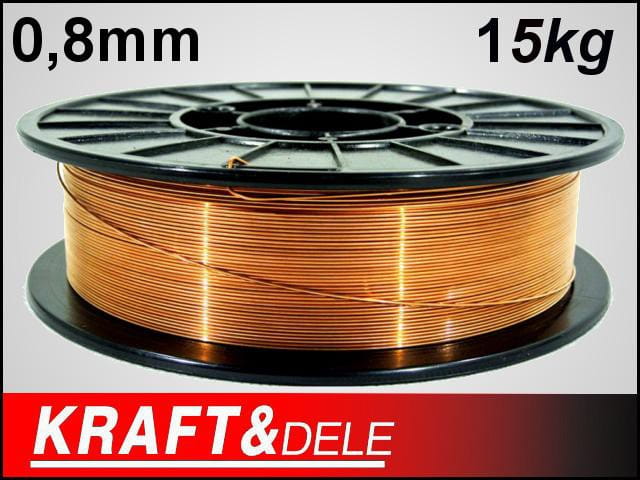 Drut spawalniczy miedziowany wysokiej jakości o symbolu KD1150 Polskiej firmy Kraft&Dele o średnicy Ø 0,8 mm i wadze 15kg.