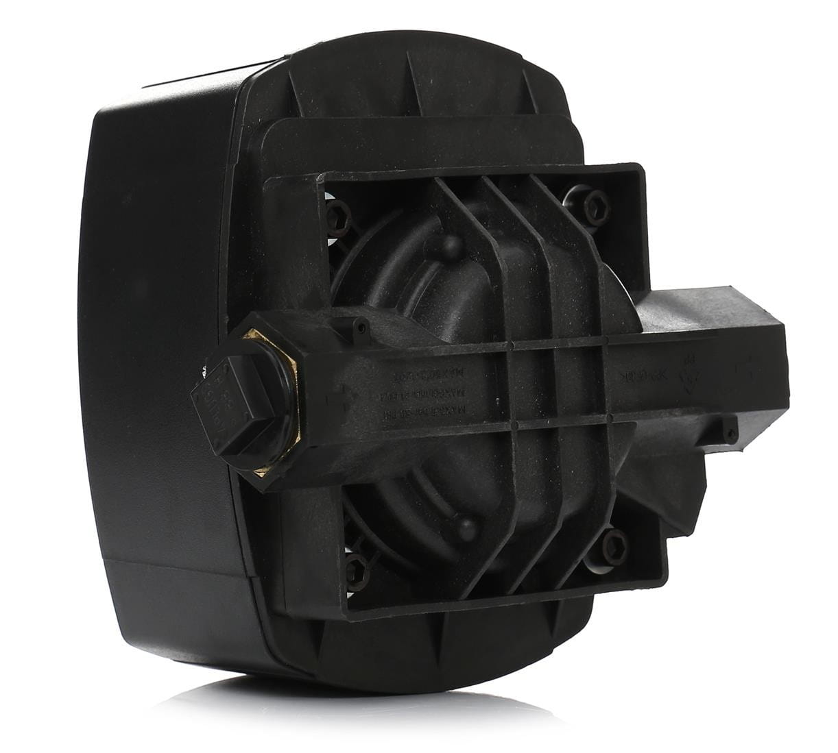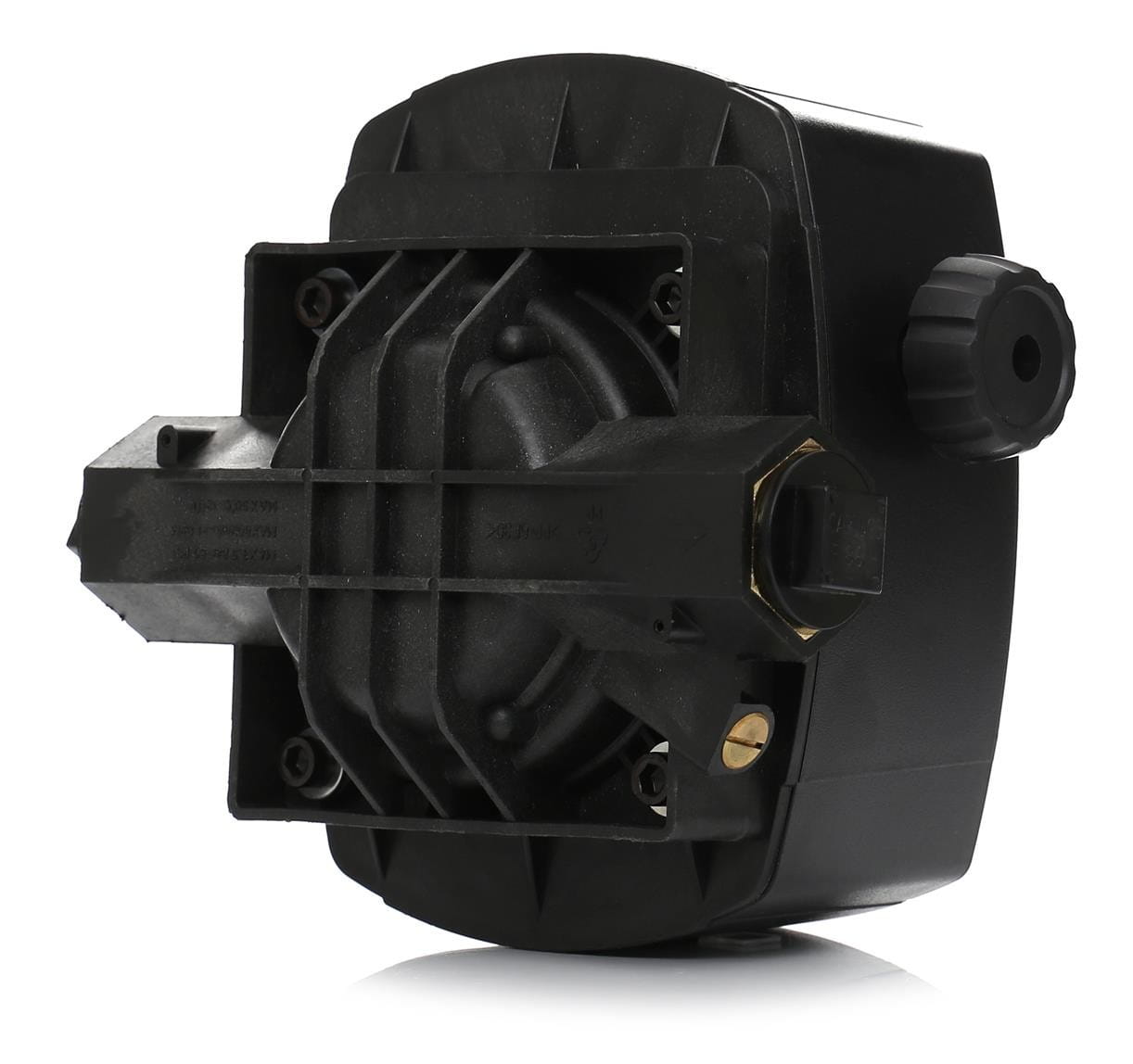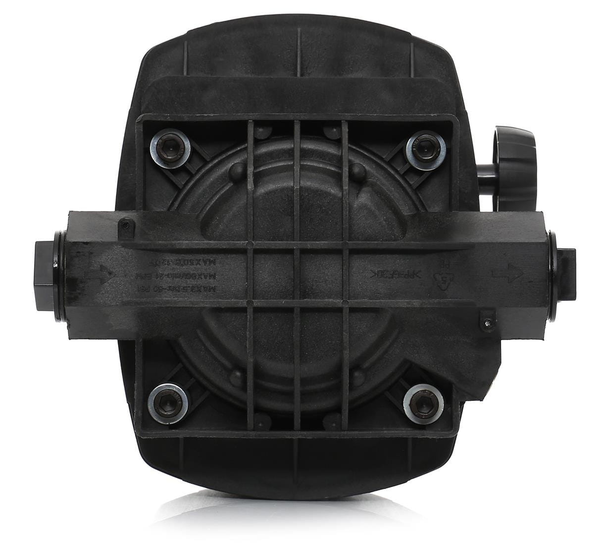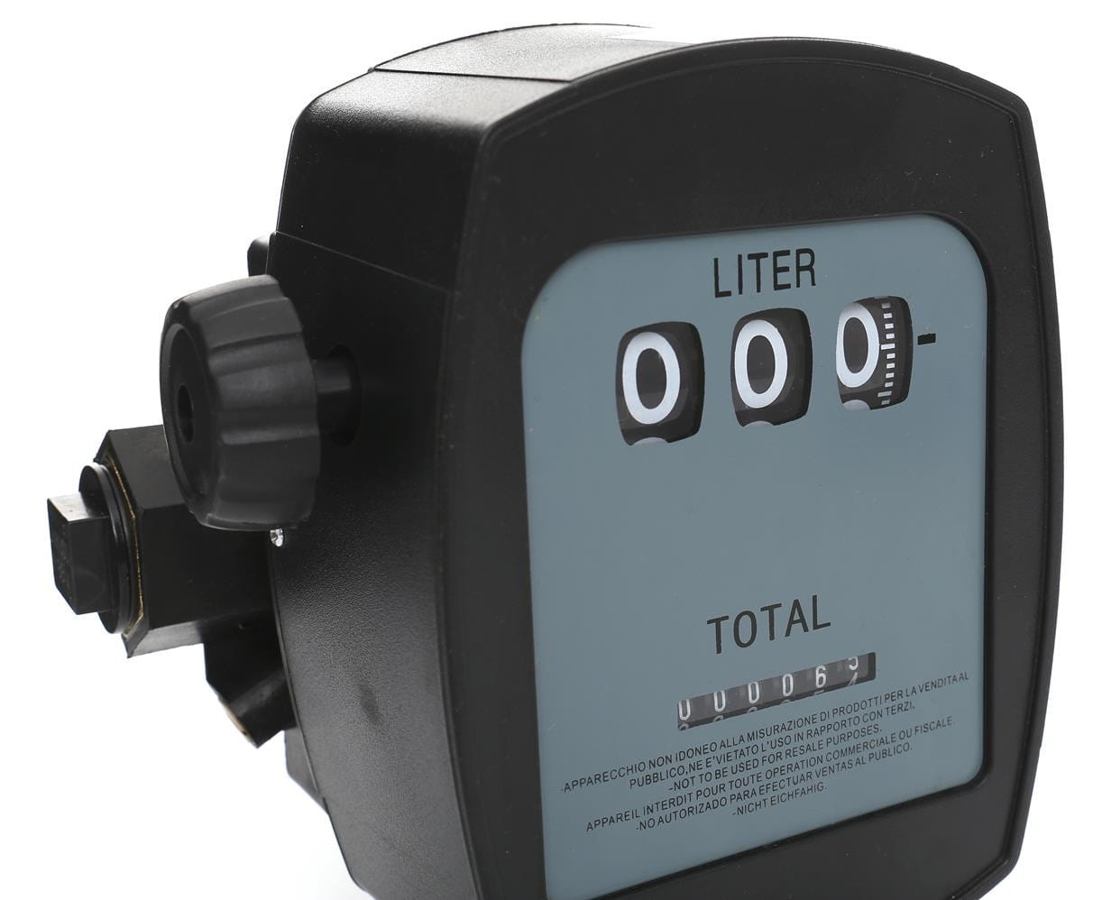 Otwory przepływowe mogą być ustawione w pozycji pionowej lub poziomej. Prosty licznik wskazuje wartość do 999 galonów lub litrów. Dolny główny licznik wskazujący łączne użycie produktu może wyświetlić wartość do 999999 galonów lub litrów.