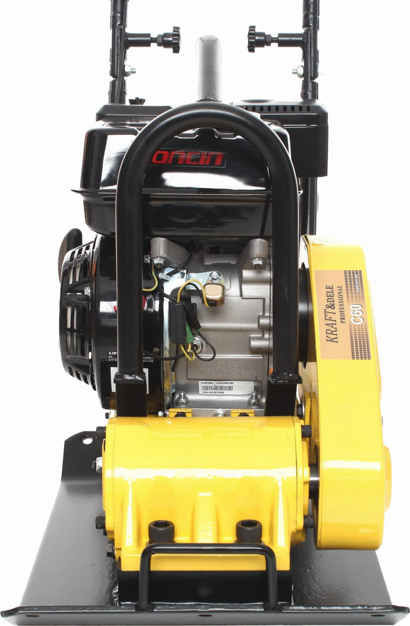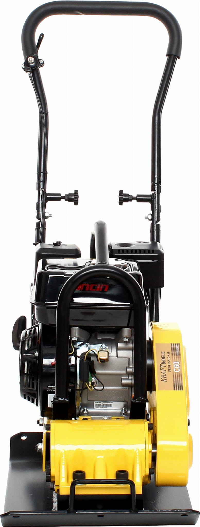 Model KD1180 wyposażono w chłodzony powietrzem, czterosuwowy, jednocylindrowy silnik LONCIN 196cc zasilany benzyną 95, który gwarantuje wysoką efektywność podczas zagęszczania. Zwarta, kompaktowa konstrukcja ułatwia manewrowanie, a składana rączka oraz wózek na kółkach pozwalają wygodnie transportować maszynę między stanowiskami pracy. Dodatkowo elektryczny system kontroli poziomu oleju zwiększa kontrolę podczas użytkowania, a ergonomiczny chwyt pokryty pianką poprawia komfort i ogranicza przenoszenie wibracji.