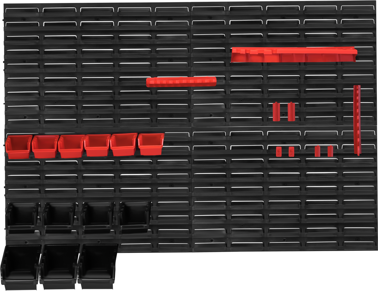 Wytrzymała konstrukcja, zróżnicowane pojemniki i uchwyty pozwalają na wygodne przechowywanie śrubokrętów, kluczy, narzędzi ręcznych i akcesoriów warsztatowych. Uniwersalna tablica doskonale sprawdzi się w garażu, warsztacie czy na stanowisku serwisowym.