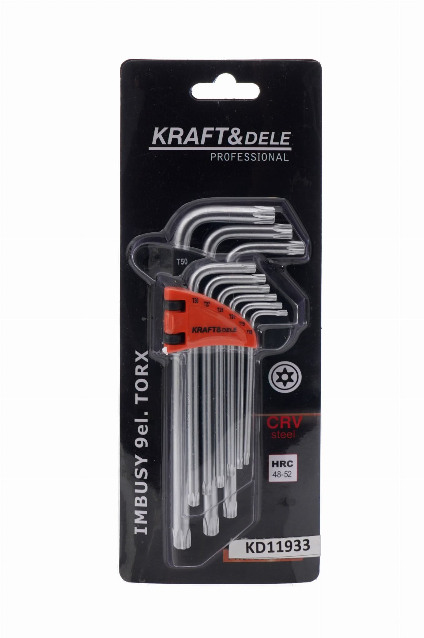 Zestaw kolorowych imbusów marki Kraft&Dele model KD11932 posiadają specjalną końcówkę z otworem dostosowanym do współpracy że śrubami typu TORX.