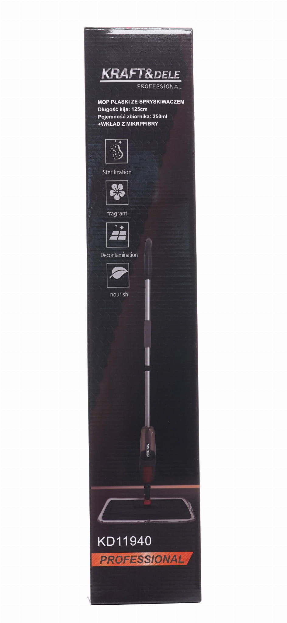 Moc ze spryskiwaczem marki Kradf&Dele model KD11940 świetnie nadaje się do szybkiego usuwania drobnych zanieczyszczeń i rozlanej cieczy. Innowacyjny pojemnik ze spryskiwaczem obsługuje się w łatwy sposób bezpośrednio na rękojeści – od teraz już żadnego zginania się.