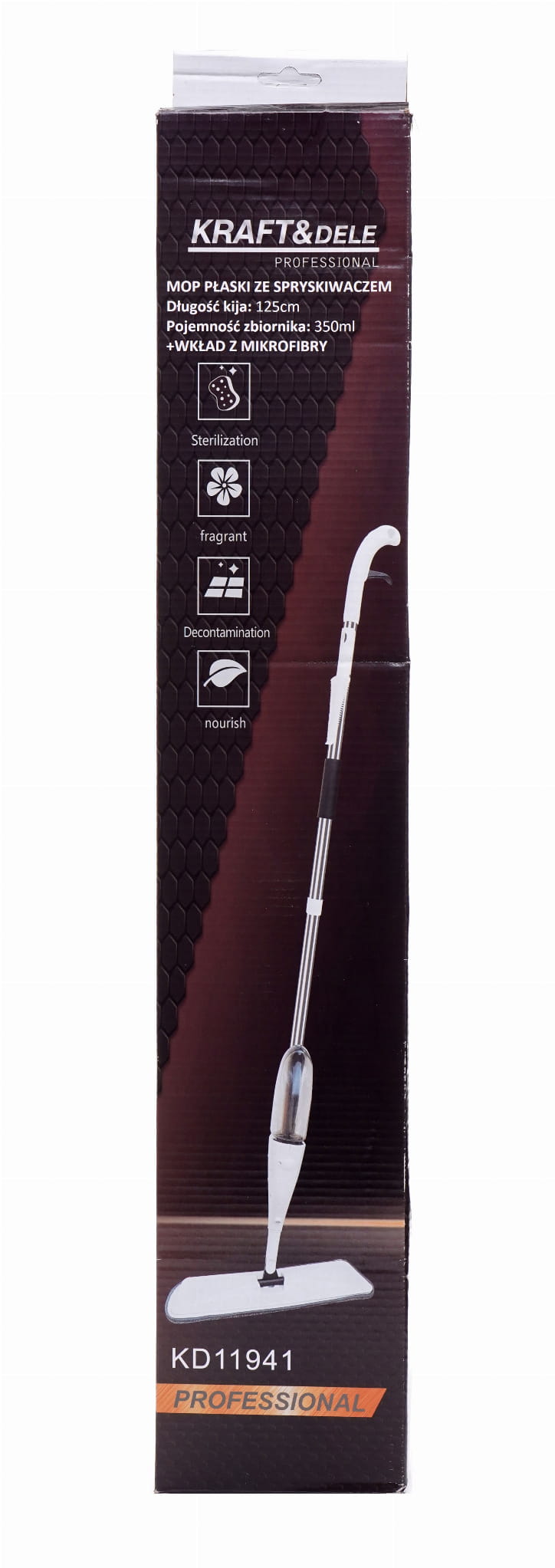 Moc ze spryskiwaczem marki Kradf&Dele model KD11941 świetnie nadaje się do szybkiego usuwania drobnych zanieczyszczeń i rozlanej cieczy. Innowacyjny pojemnik ze spryskiwaczem obsługuje się w łatwy sposób bezpośrednio na rękojeści – od teraz już żadnego zginania się.
