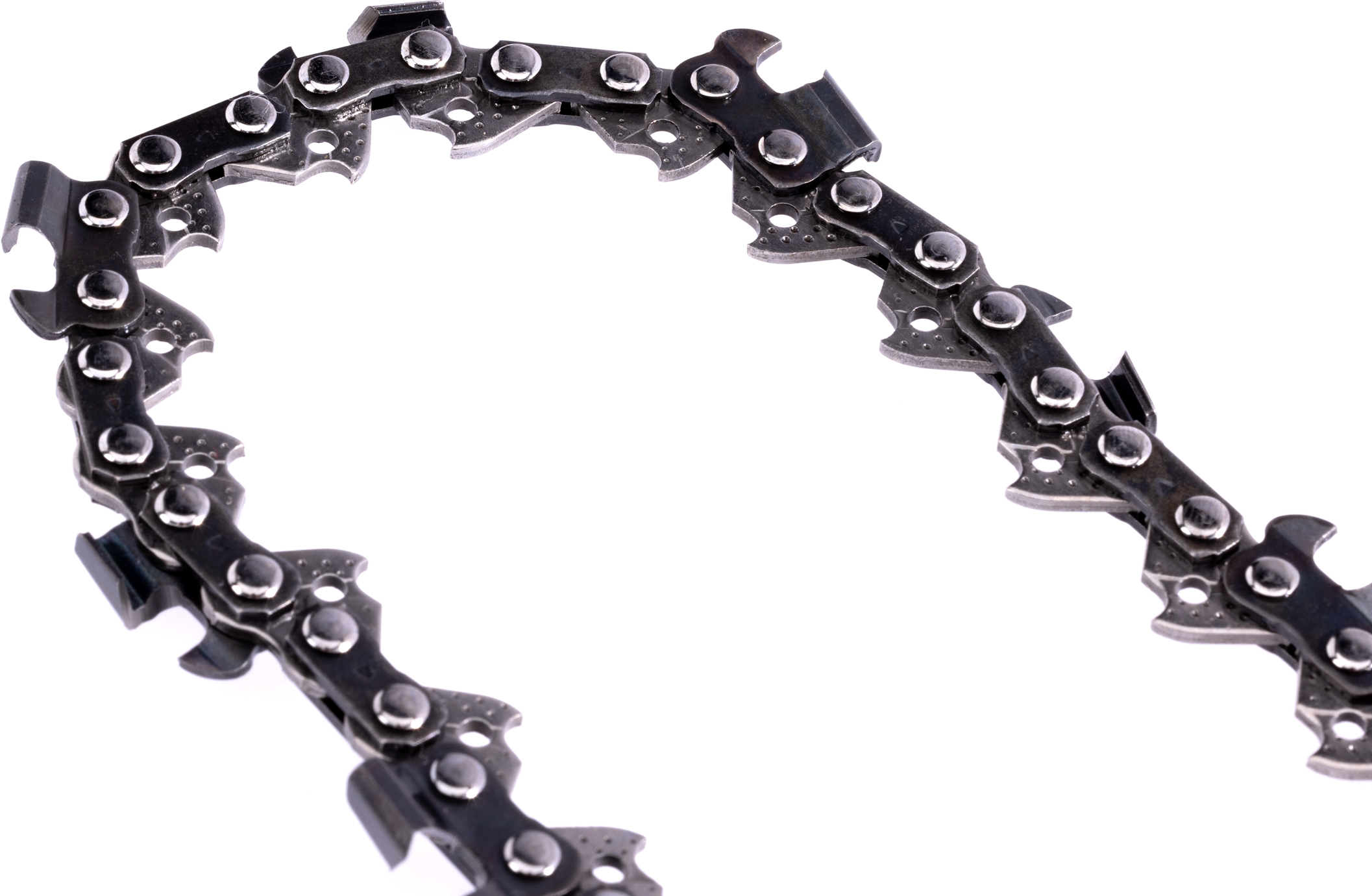 Ostry profil zębów tnących gwarantuje skuteczne i szybkie cięcie, a specjalna konstrukcja ogniw ogranicza odbicie, zwiększając komfort i bezpieczeństwo użytkowania.