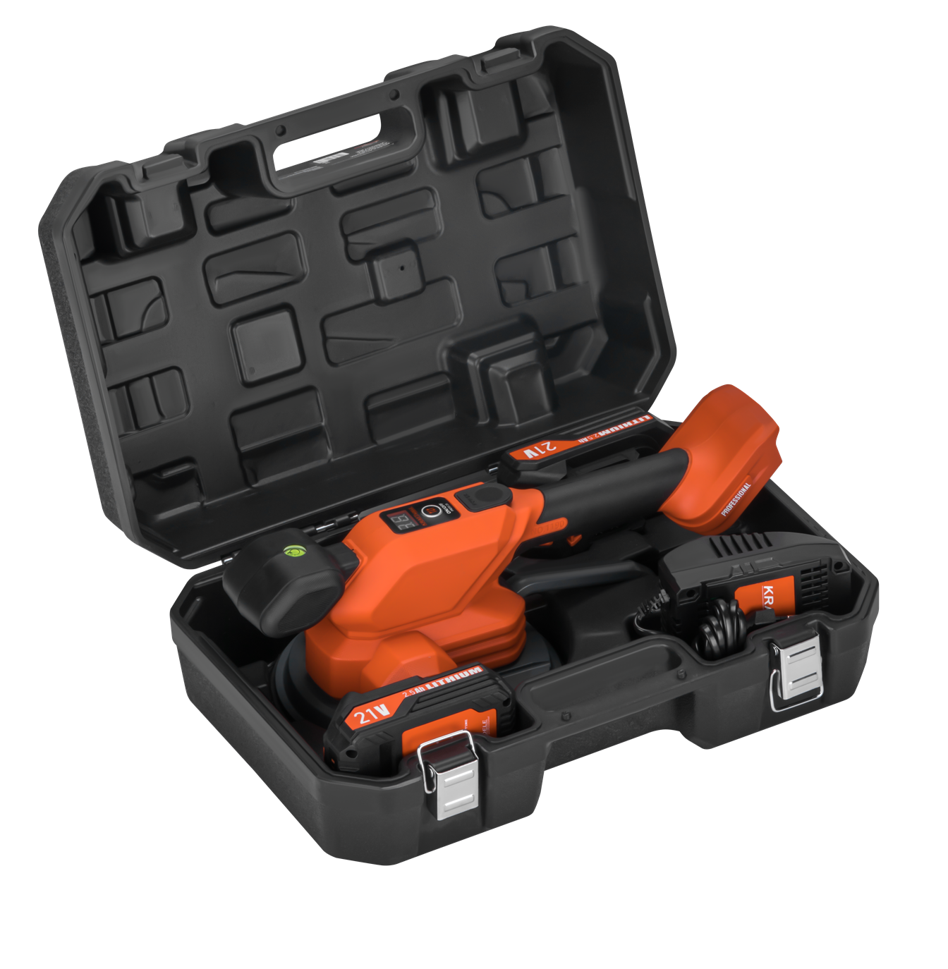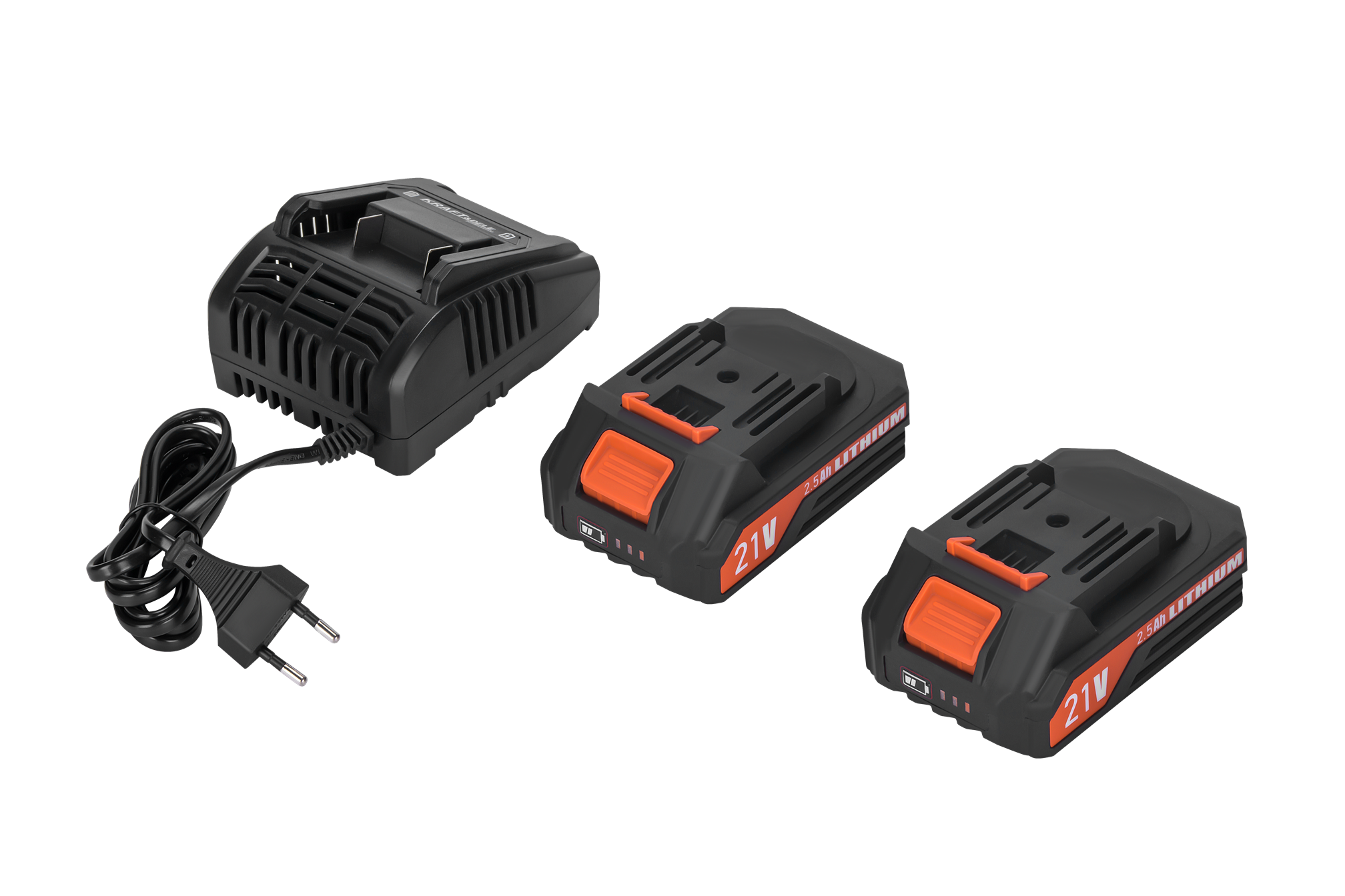 Model KD11967 wyposażony jest w wydajny akumulator o napięciu 21V i pojemności 2,5 Ah, co pozwala na długi czas pracy bez konieczności podłączania do sieci. W zestawie znajduje się również ładowarka 230 V / 50 Hz, ułatwiająca szybkie uzupełnienie energii.