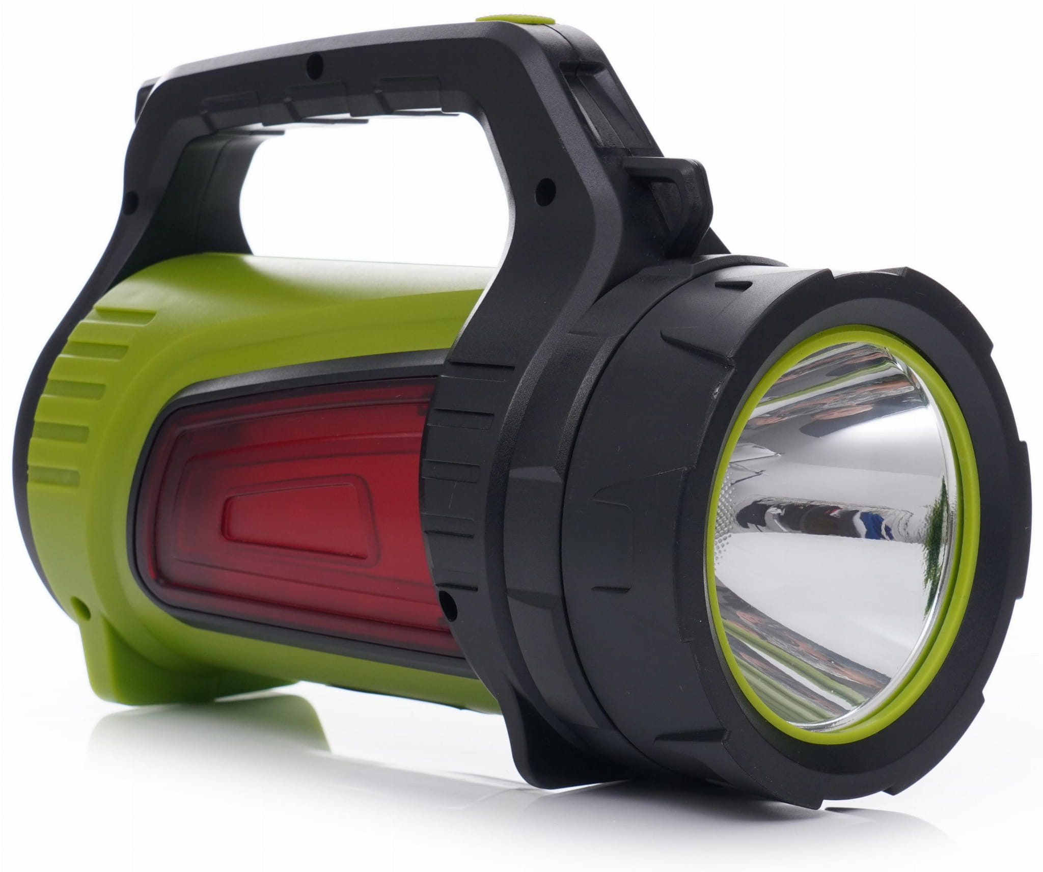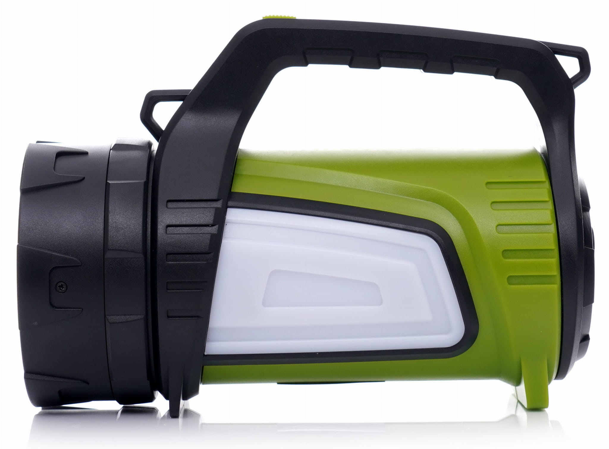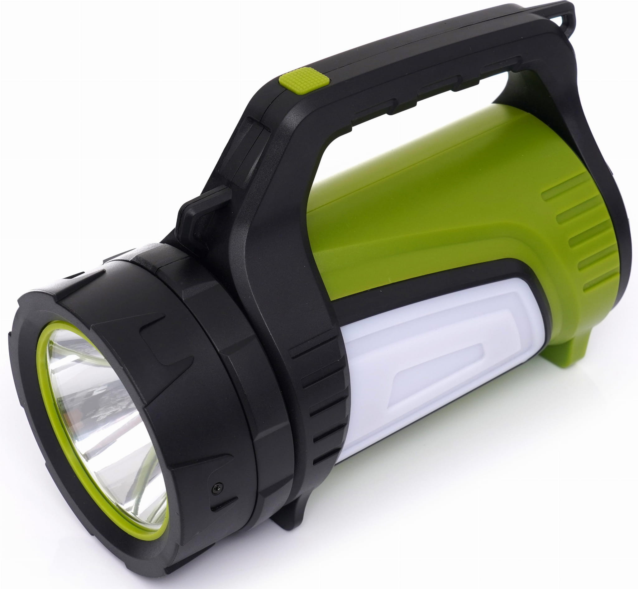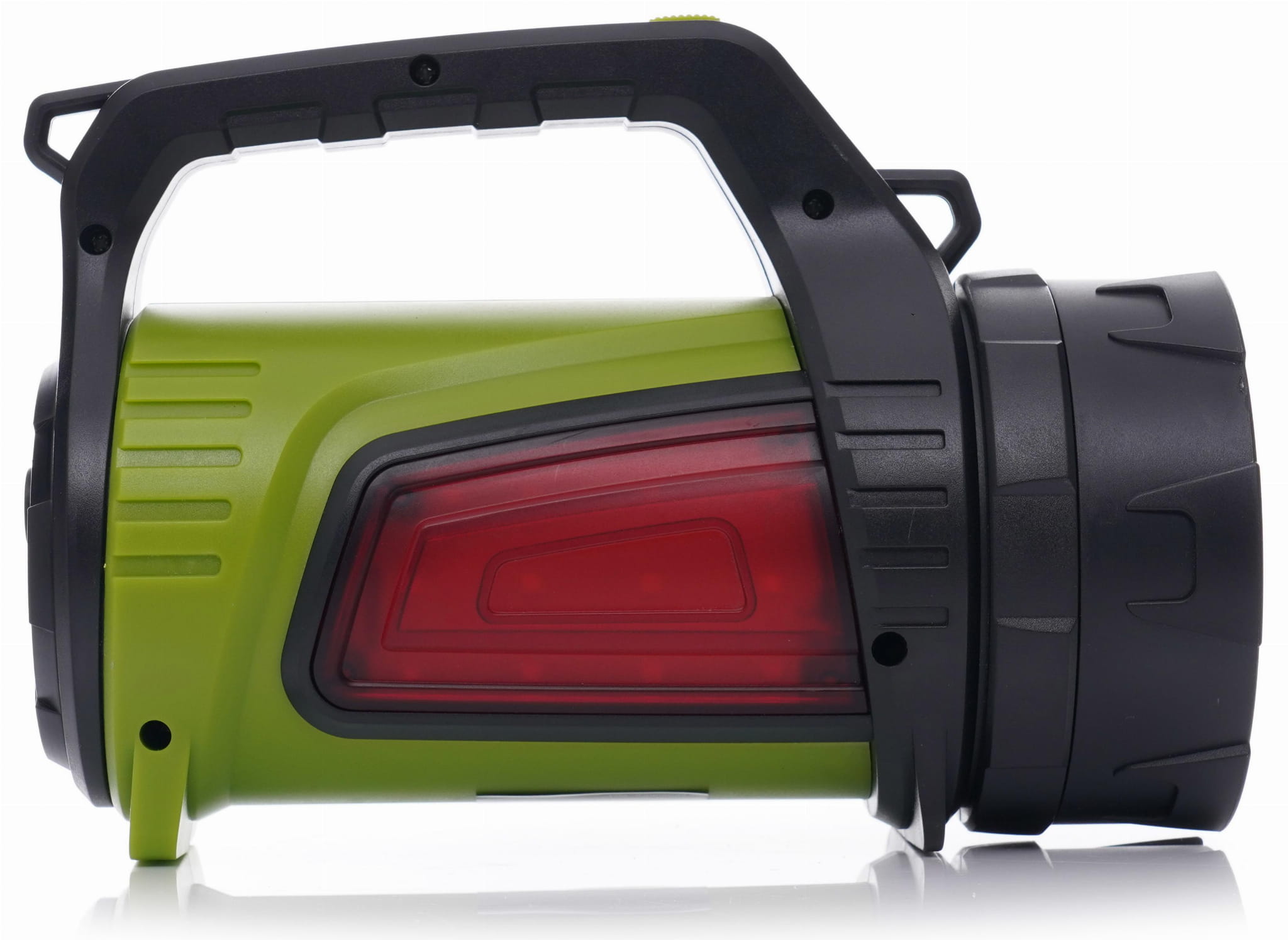 Latarka wyposażona jest w boczne panele świetlne, umożliwiające doświetlenie otoczenia wokół użytkownika, a czerwone zabarwienie jednego z nich może pełnić funkcję ostrzegawczą. Wytrzymała obudowa z ABS, plastiku i gumy zapewnia odporność na uszkodzenia, a funkcja powerbanka pozwala ładować inne urządzenia mobilne w terenie.
