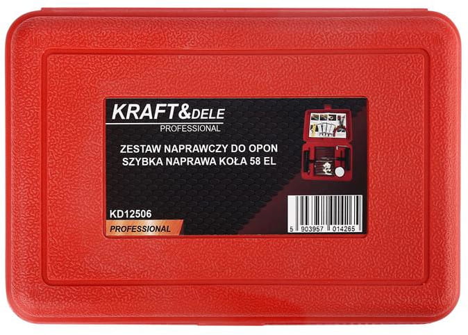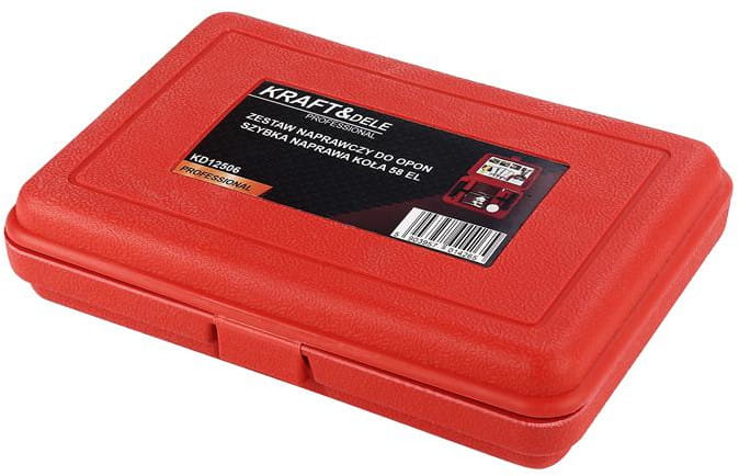 Zestaw naprawczy do opon KD12506 marki Kraft&Dele to kompletne rozwiązanie do szybkiego i skutecznego usuwania uszkodzeń opon typu tubeless (bezdętkowych). Niezbędny w każdym warsztacie samochodowym, serwisie ogumienia, jak i w bagażniku pojazdu jako pomoc w awaryjnych sytuacjach na drodze.