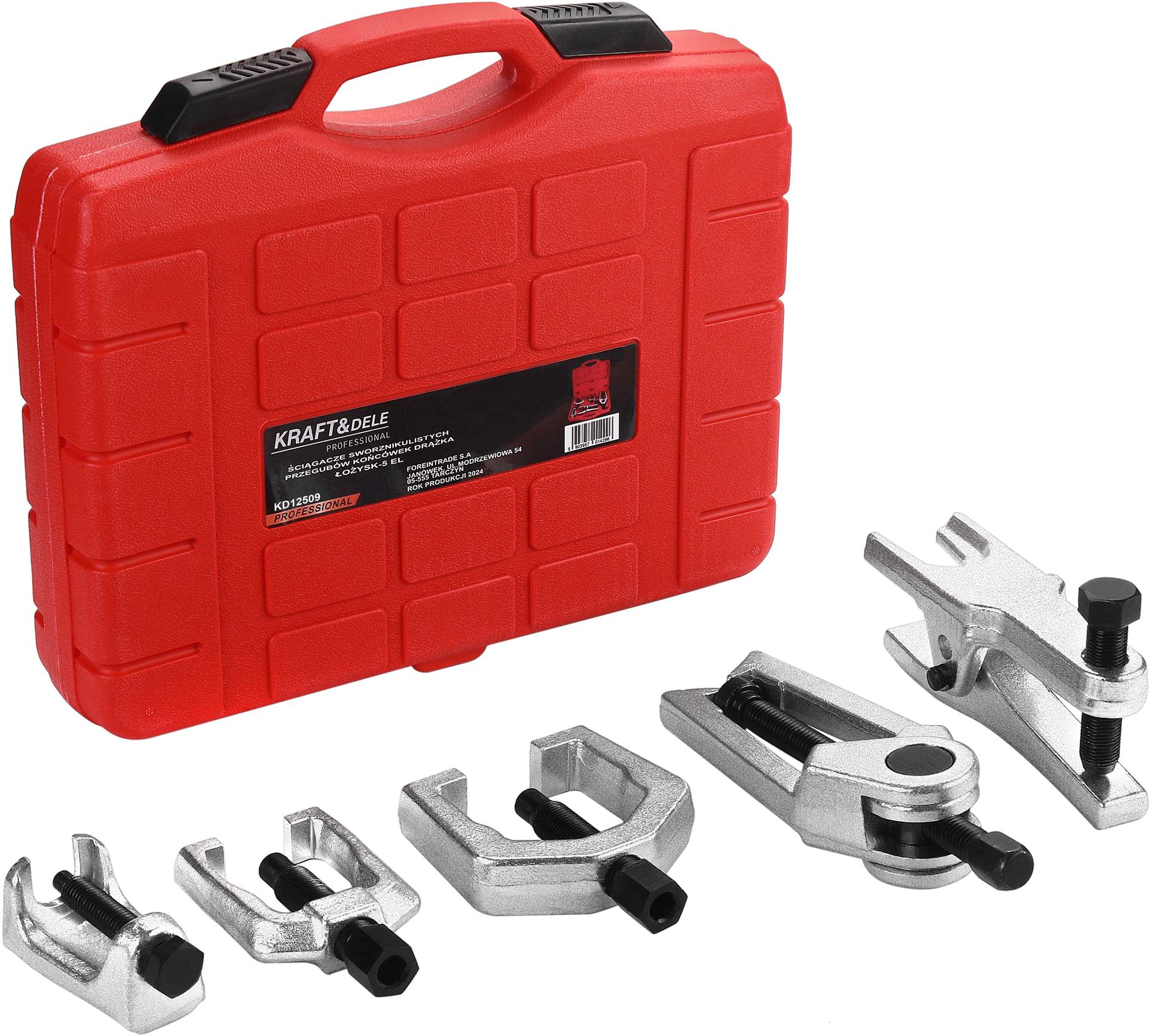 Model KD12509 wyróżnia się solidną konstrukcją wykonaną ze stali CrV, która zapewnia wysoką wytrzymałość oraz odporność na intensywną eksploatację. Różnorodne typy i rozmiary ściągaczy pozwalają na dopasowanie narzędzia do wielu elementów zawieszenia i układu kierowniczego. Dzięki temu zestaw sprawdzi się zarówno przy profesjonalnych naprawach samochodowych, jak i podczas prac serwisowych wykonywanych w przydomowym garażu.
