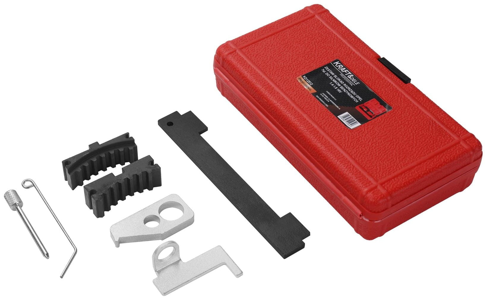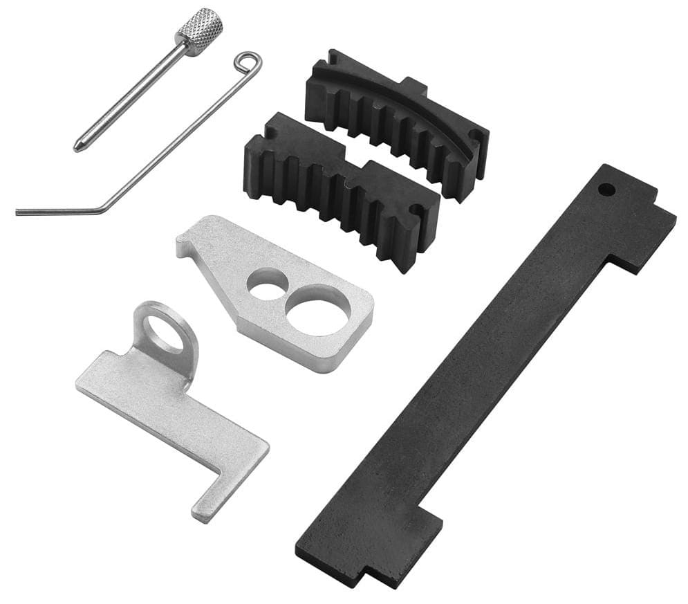 Zawiera przyrząd do ustawiania GMP, przyrząd do wałków rozrządu, trzpień do rolki napinacza i śrubę blokującą dostępny w poręcznej walizce.