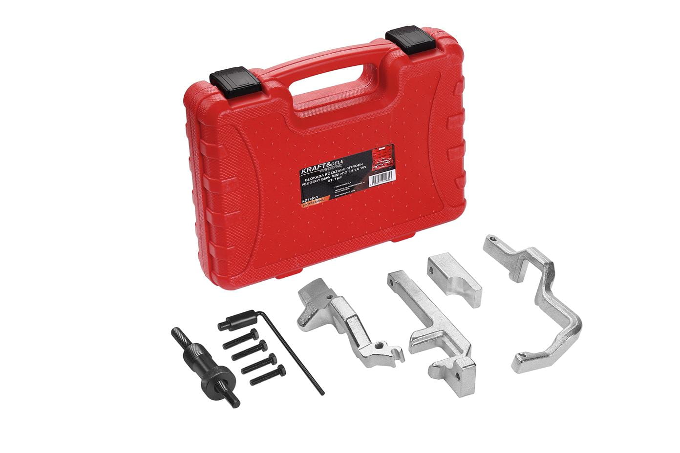 Profesjonalny zestaw do obsługi rozrządu marki Kraft&Dele model KD12513 przeznaczony do serwisowania i ustawiania rozrządu.Blokady rozrządu pełnią istotną rolę w aspektach związanych z bezpieczeństwem i trwałością silnika.  Przyczyniają się do zwiększenia niezawodności silnika i minimalizowania ryzyka uszkodzeń. Zestaw wykonany z wysokiej jakości stali która wyróżnia się wysoką wytrzymałością oraz podwyższoną  odpornością na ścieranie.