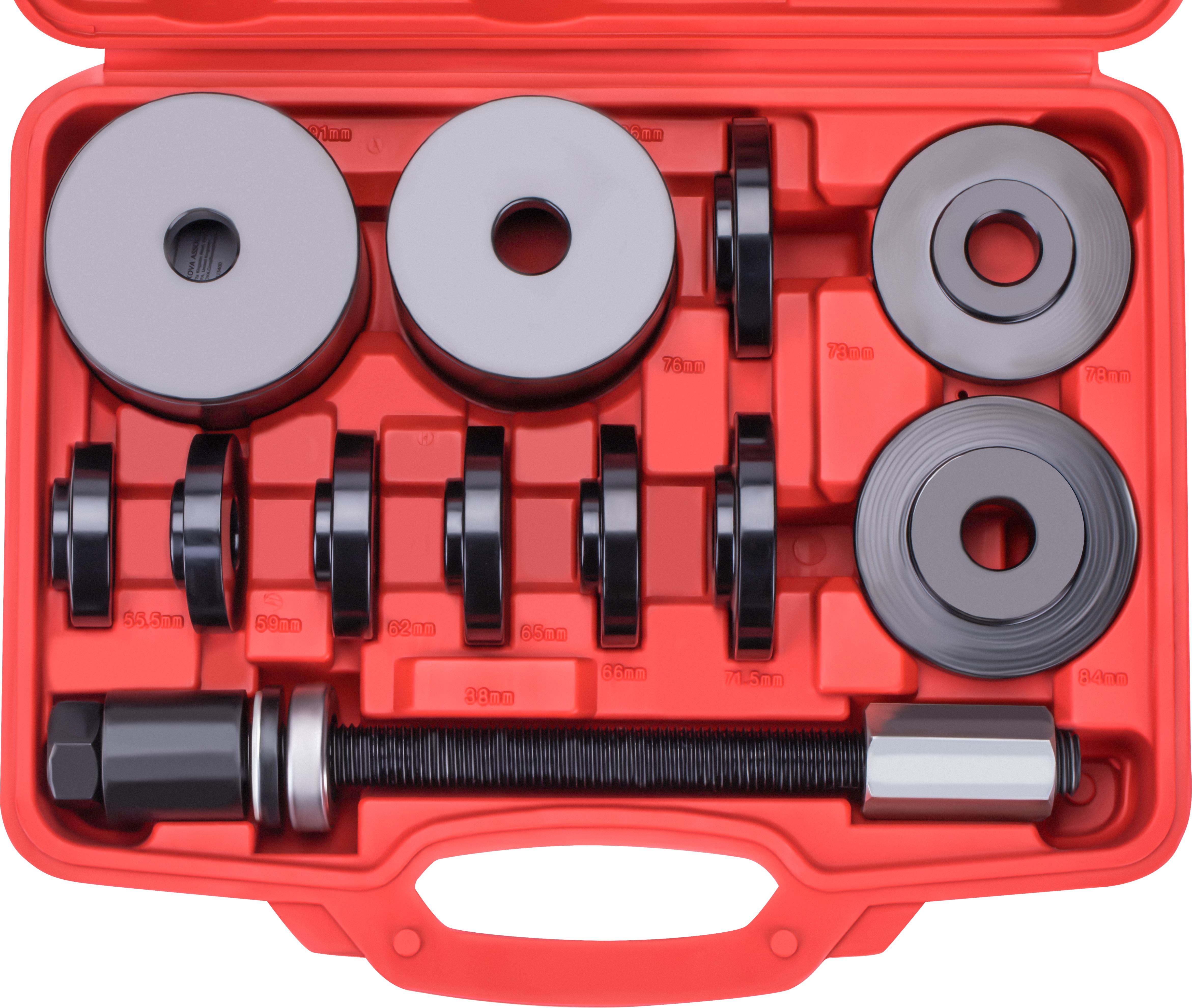 Zestaw oparty jest na solidnym mechanizmie śrubowym, który pozwala na równomierne i kontrolowane wyciskanie elementów. Dzięki zastosowaniu wytrzymałych dysków oraz tulei o różnych rozmiarach, narzędzie zapewnia szeroki zakres zastosowań i dopasowanie do wielu typów piast i łożysk. Całość została wykonana z trwałych materiałów, a głęboko żłobione gwinty gwarantują płynną pracę i wysoką odporność na obciążenia.